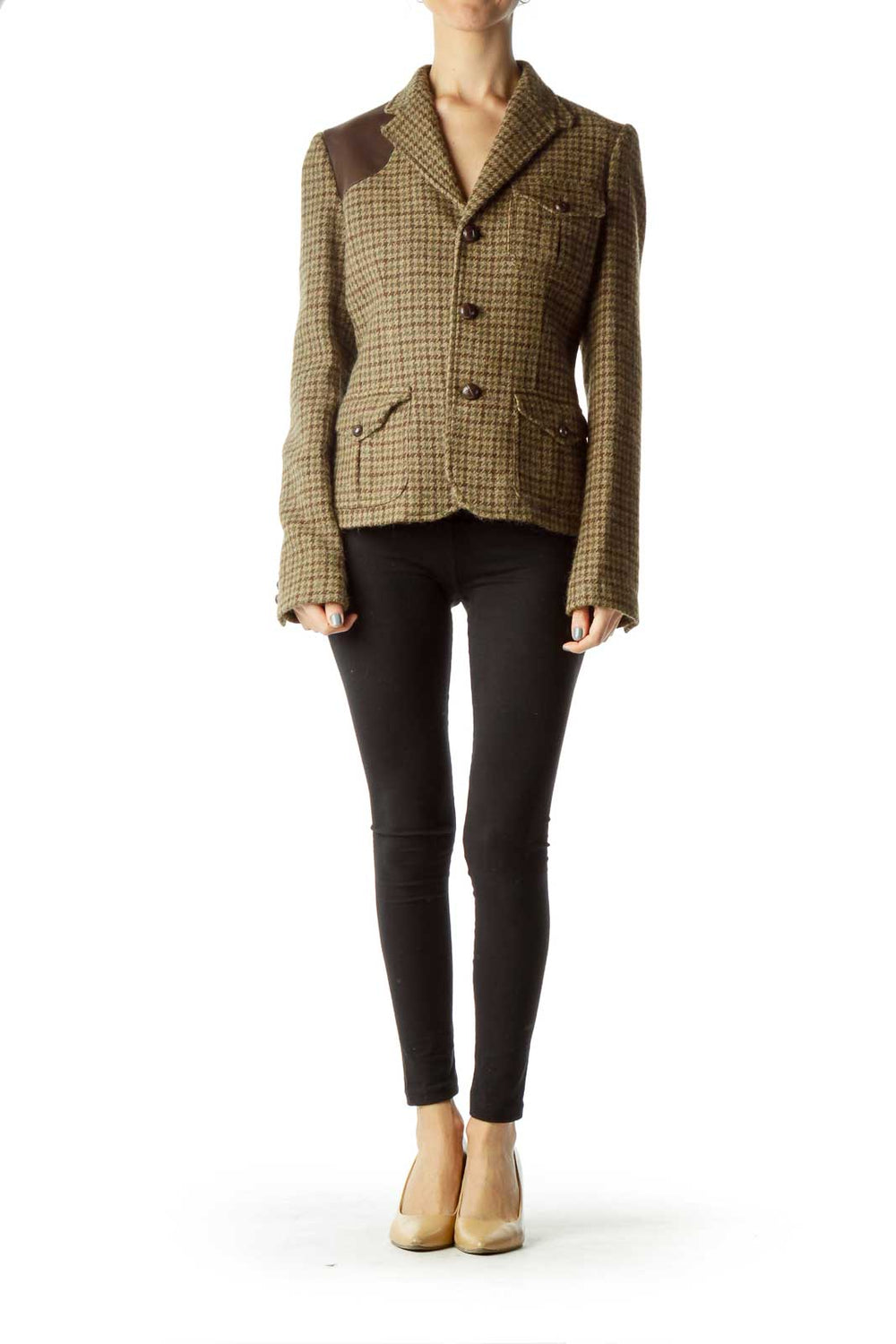Brown Houndstooth Wool Jacket