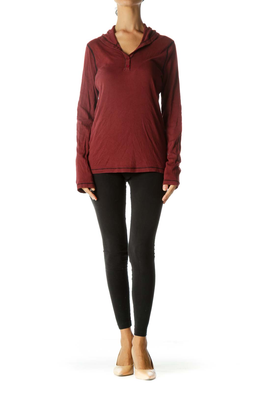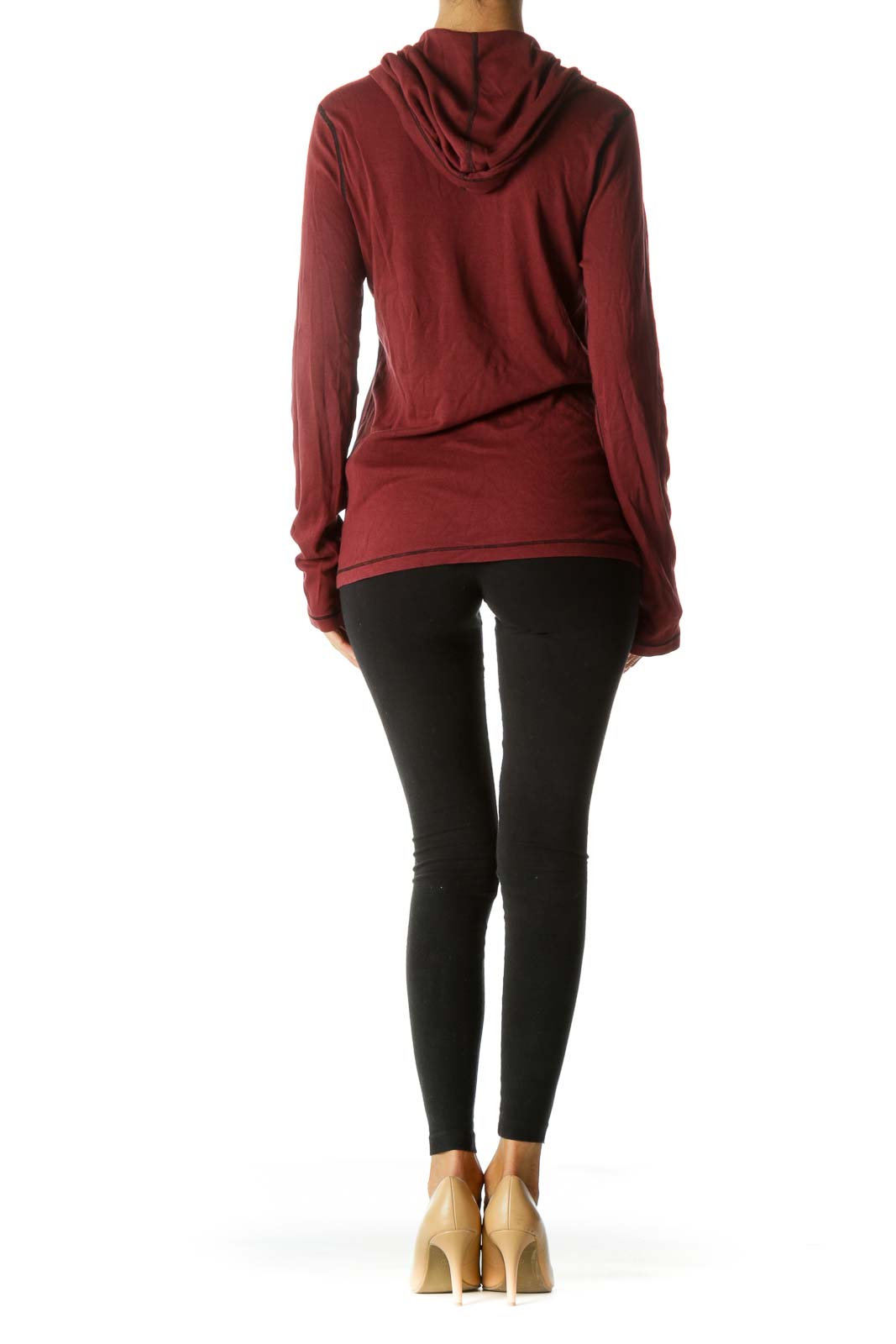 Burgundy Black Supima Cotton Blend Hooded Stretch Long Sleeve Top