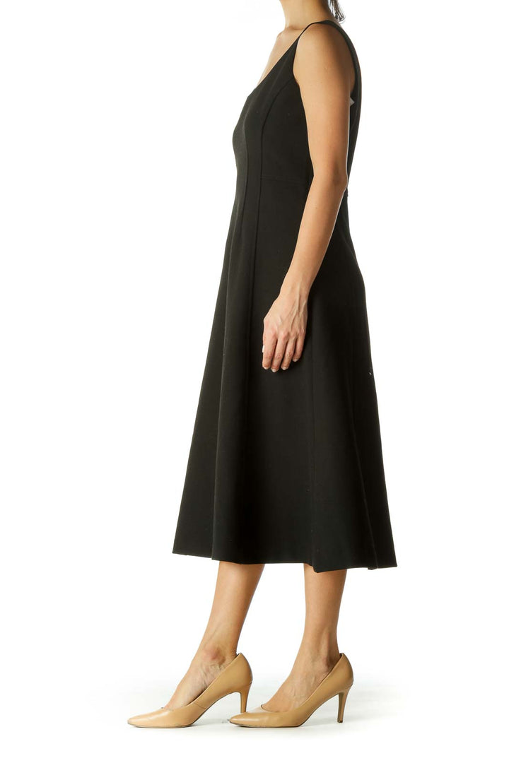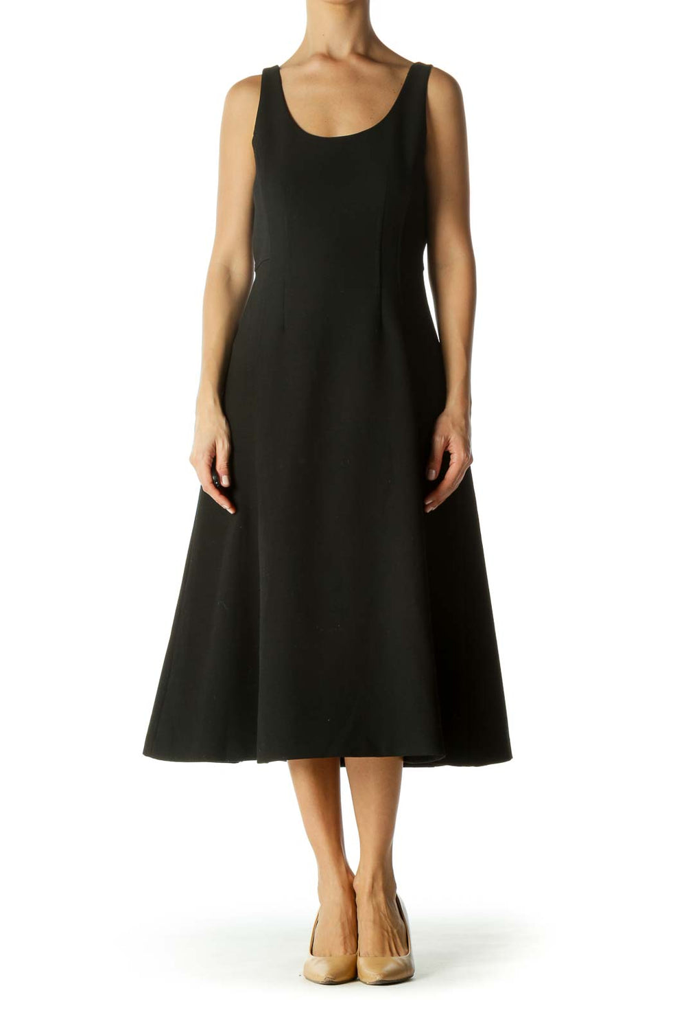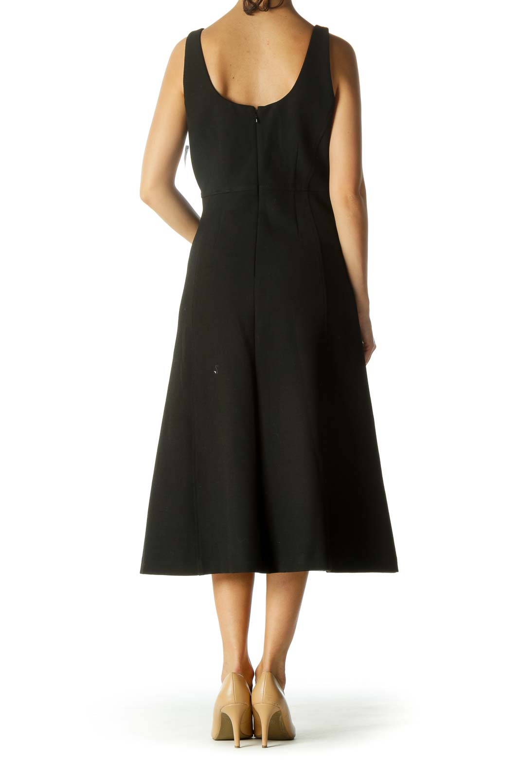 Black Round Neck Textured Medium-Weight Stretch A-Line Dress
