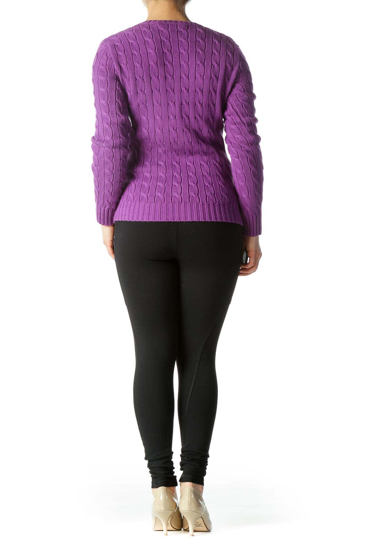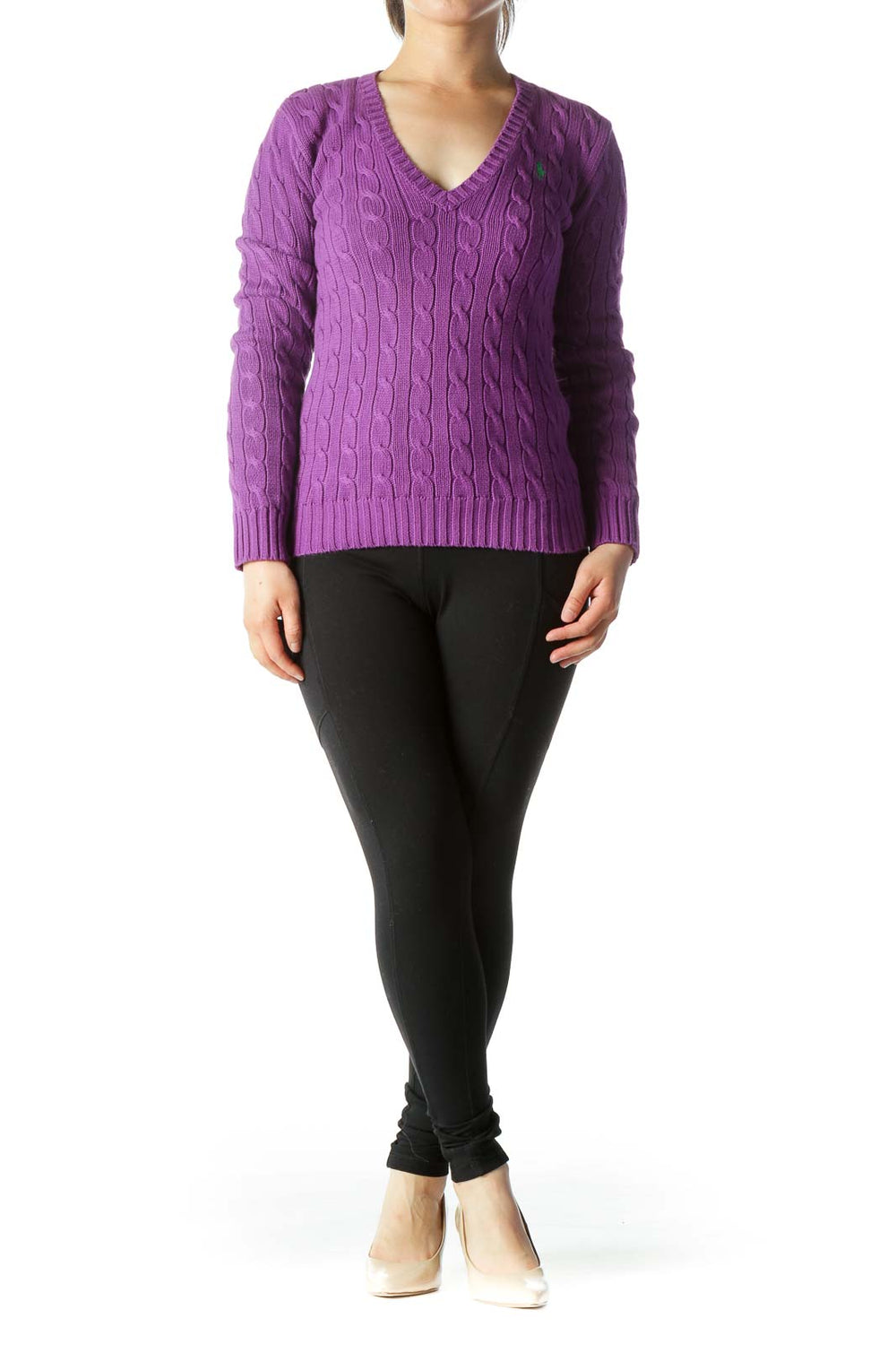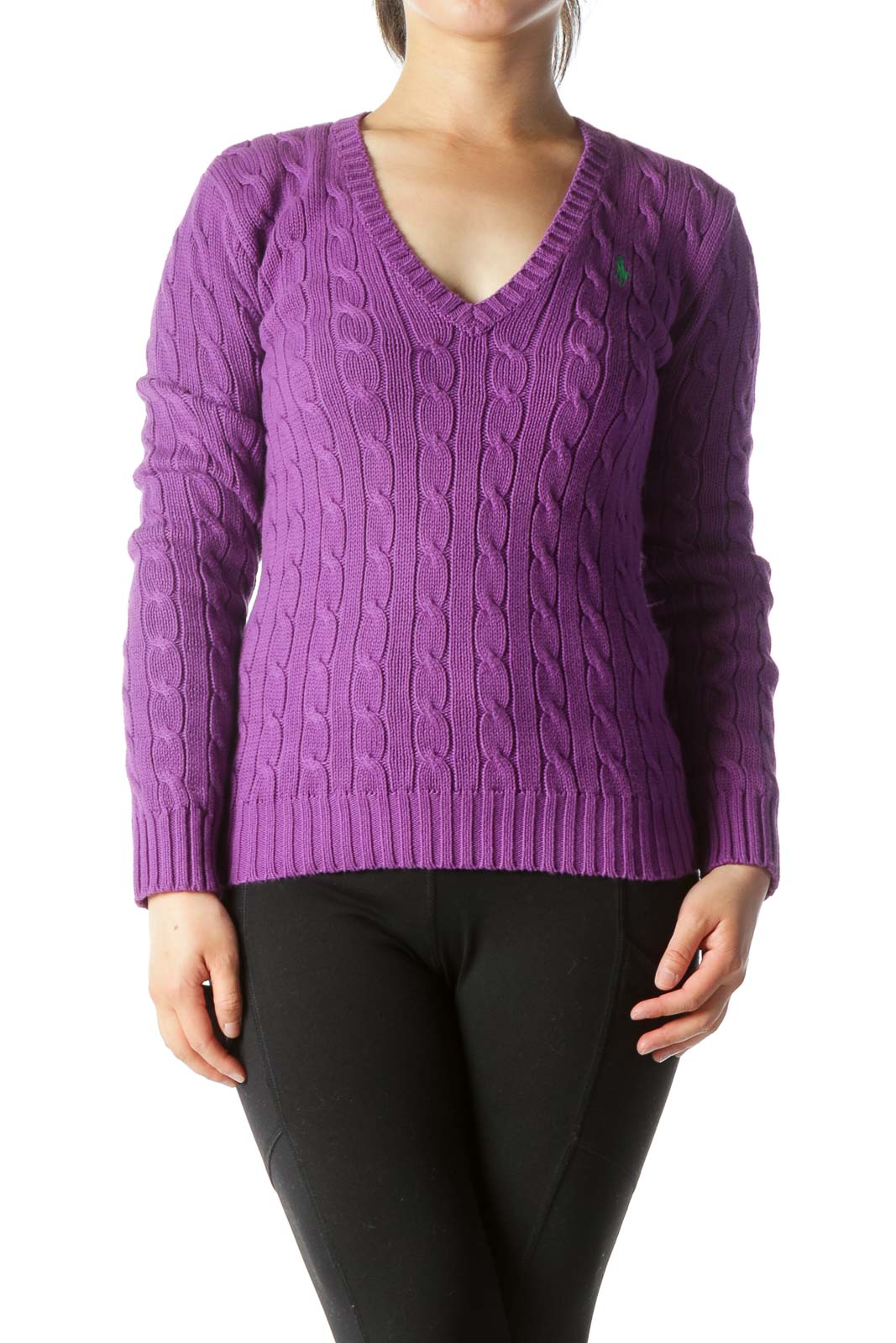 Purple 100% Cotton V-Neck Knit Long-Sleeve Sweater