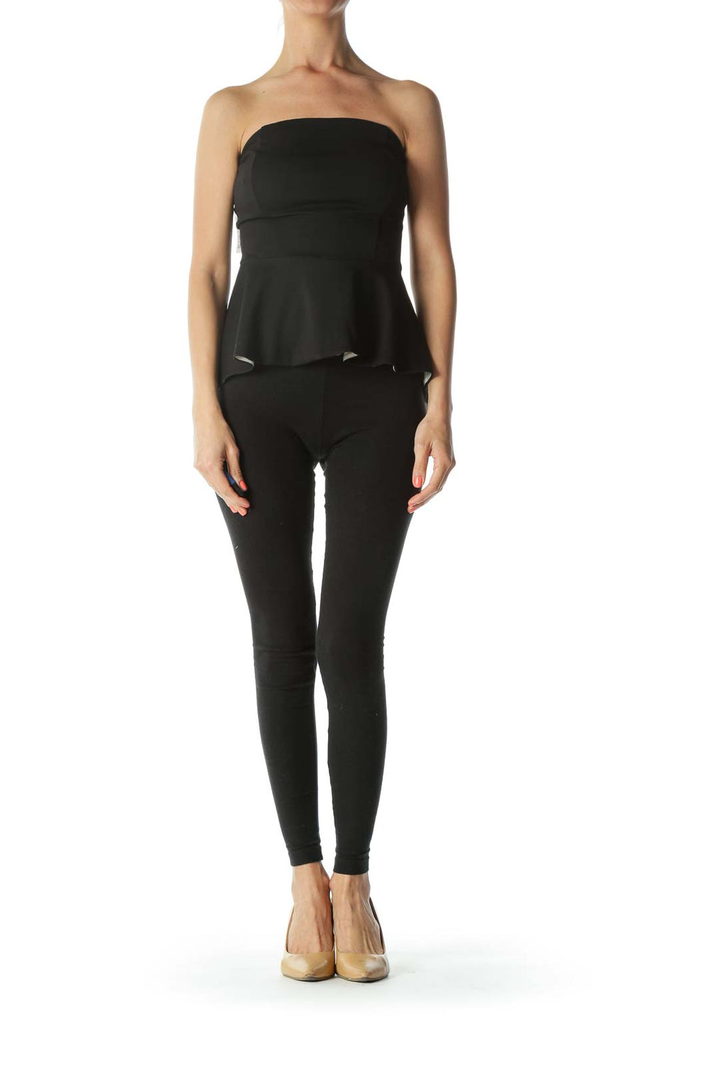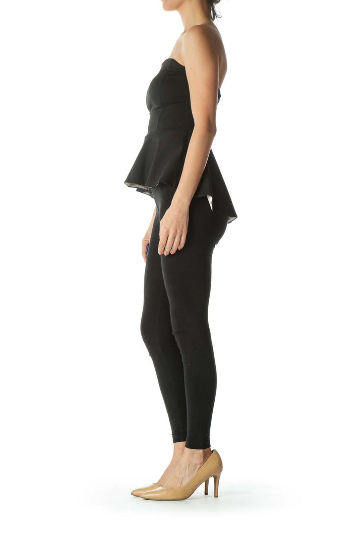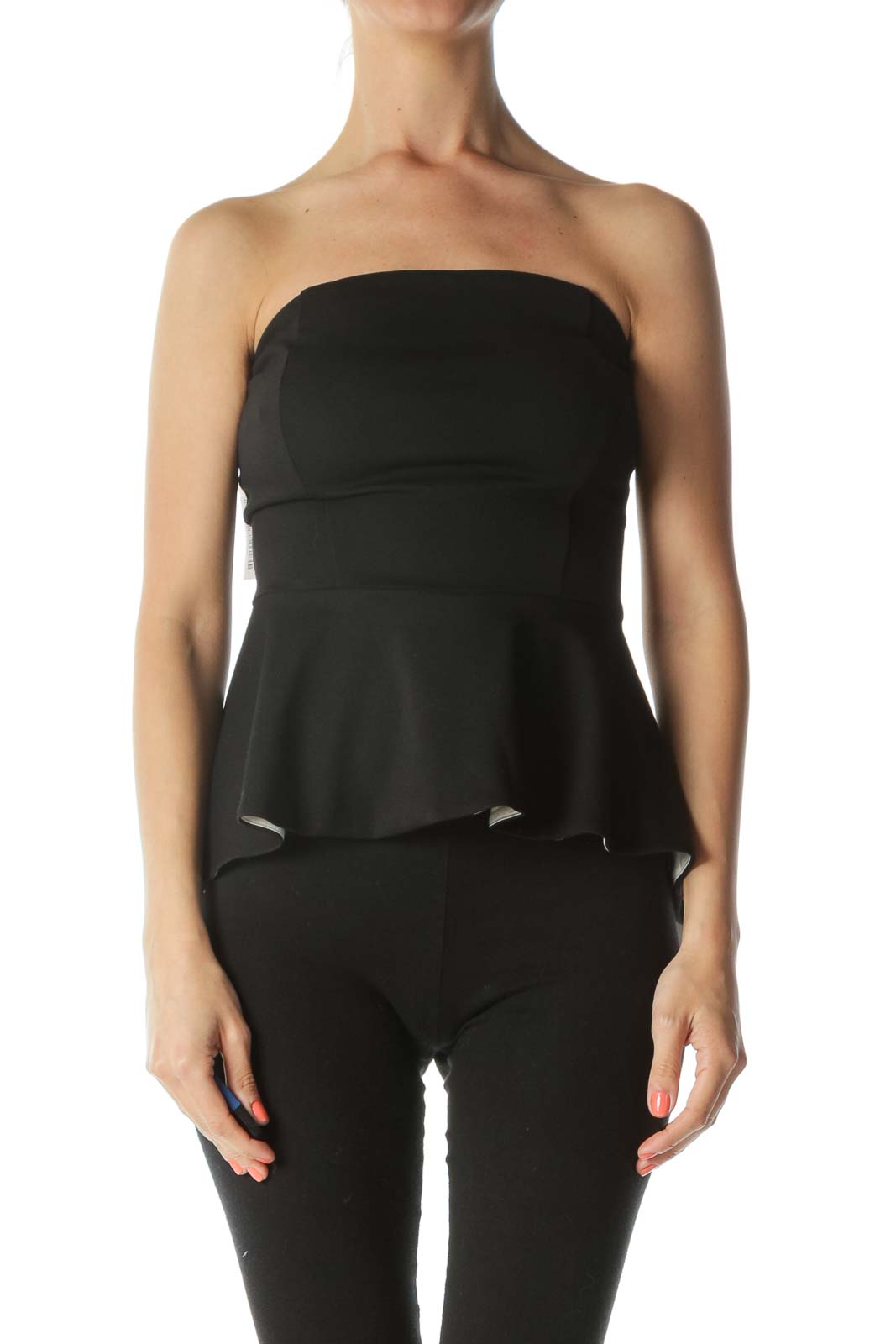 Black/Cream Strapless High-Low Peplum Top with Inside-Stick-On-Trim Aid