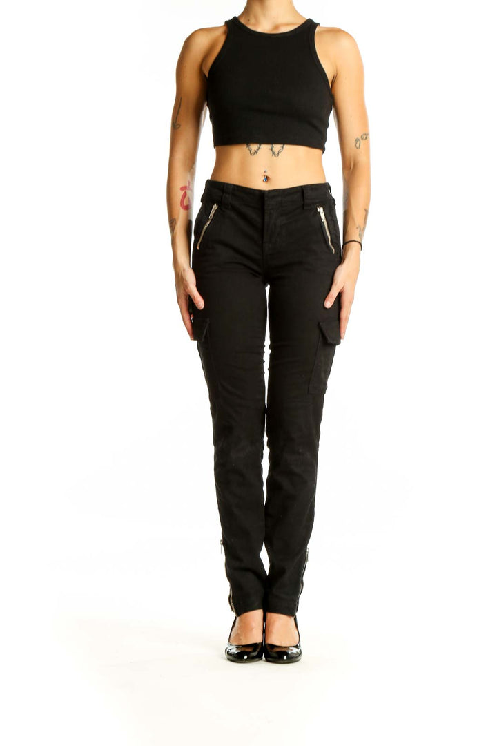 Step into style with these sleek black cargo denim jeans from J Brand. These versatile pants combine the classic appeal of denim with the functionality of cargo pockets, perfect for the fashion-forward woman who values both form and function. The slim fit flatters your silhouette while providing comfort for all-day wear.