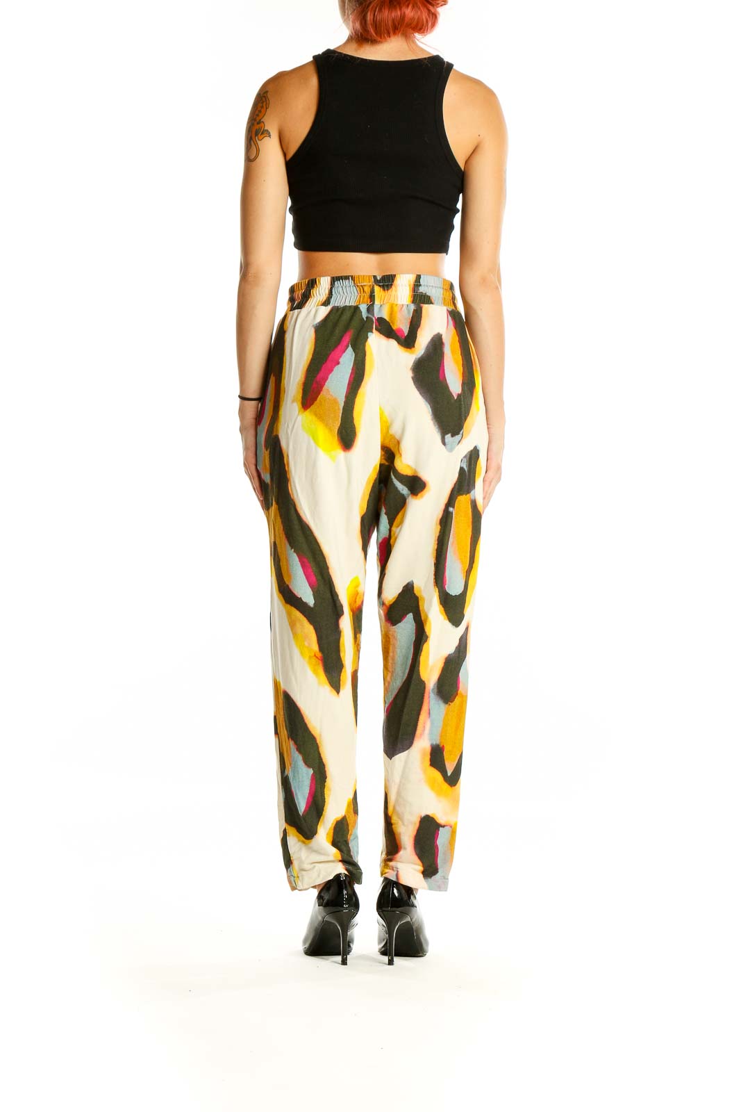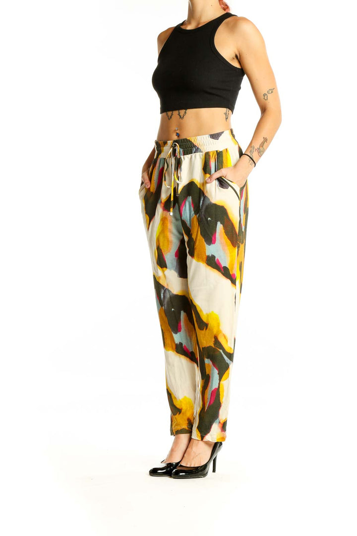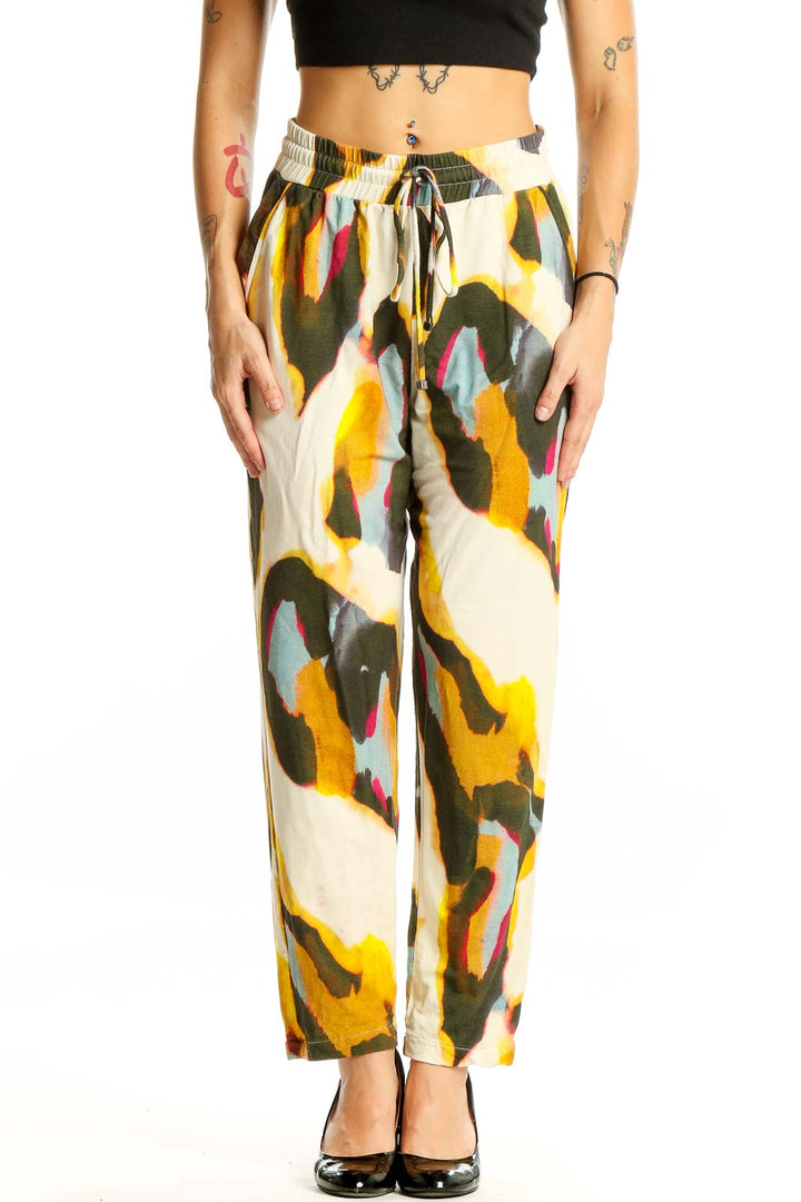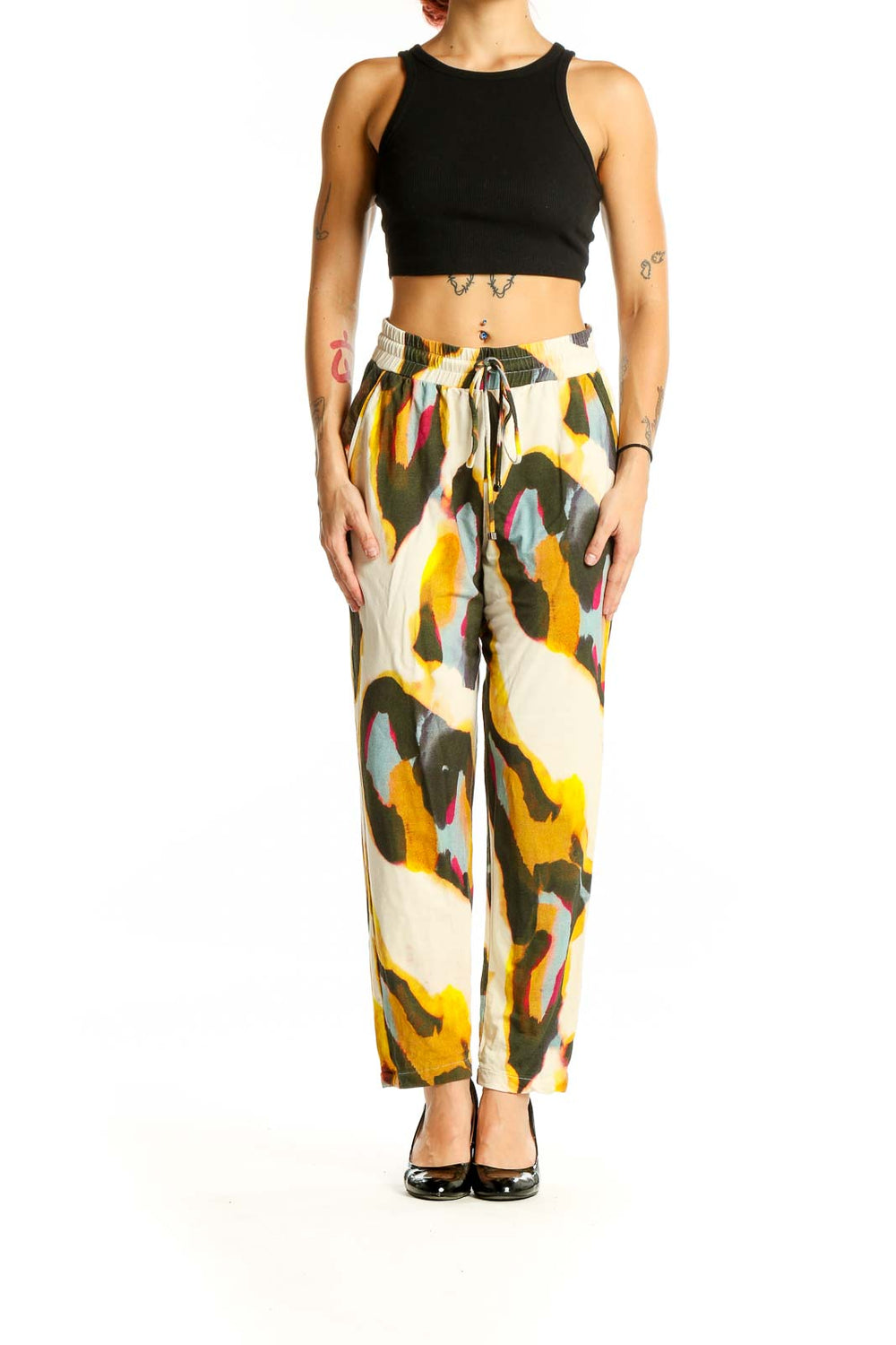 Make a bold statement with these eye-catching Lenny Niemeyer pants. Featuring a vibrant multicolor abstract print in shades of yellow, olive, cream, and blue, these pants are sure to turn heads. The comfortable elastic waistband with drawstring closure allows for a customizable fit, while the relaxed silhouette offers effortless style and movement.