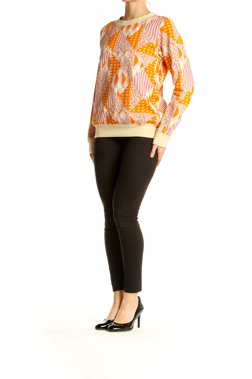 Make a bold statement with this vibrant SagexClare cotton sweatshirt. Featuring an eye-catching geometric print in shades of orange, pink, and cream, this piece is perfect for those who love to stand out. The unique pattern combines stripes, polka dots, and abstract shapes for a truly one-of-a-kind look.