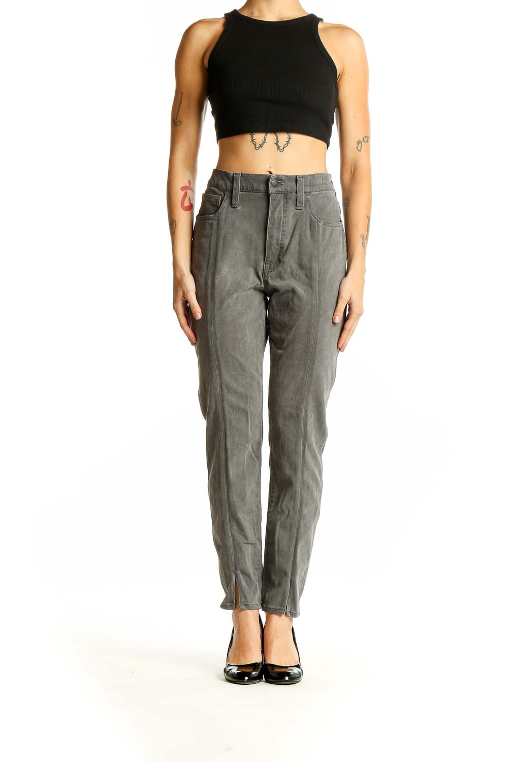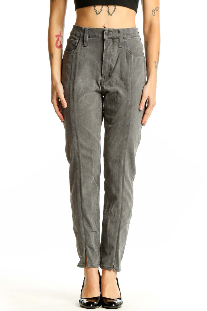 These jeans feature a sleek gray wash that adds a modern twist to traditional denim. The excellent condition ensures you'll look polished and put-together every time you wear them. With a 29" waist, 34" hips, and 26" length, these medium-sized jeans offer a tailored fit that's perfect for a range of body types.