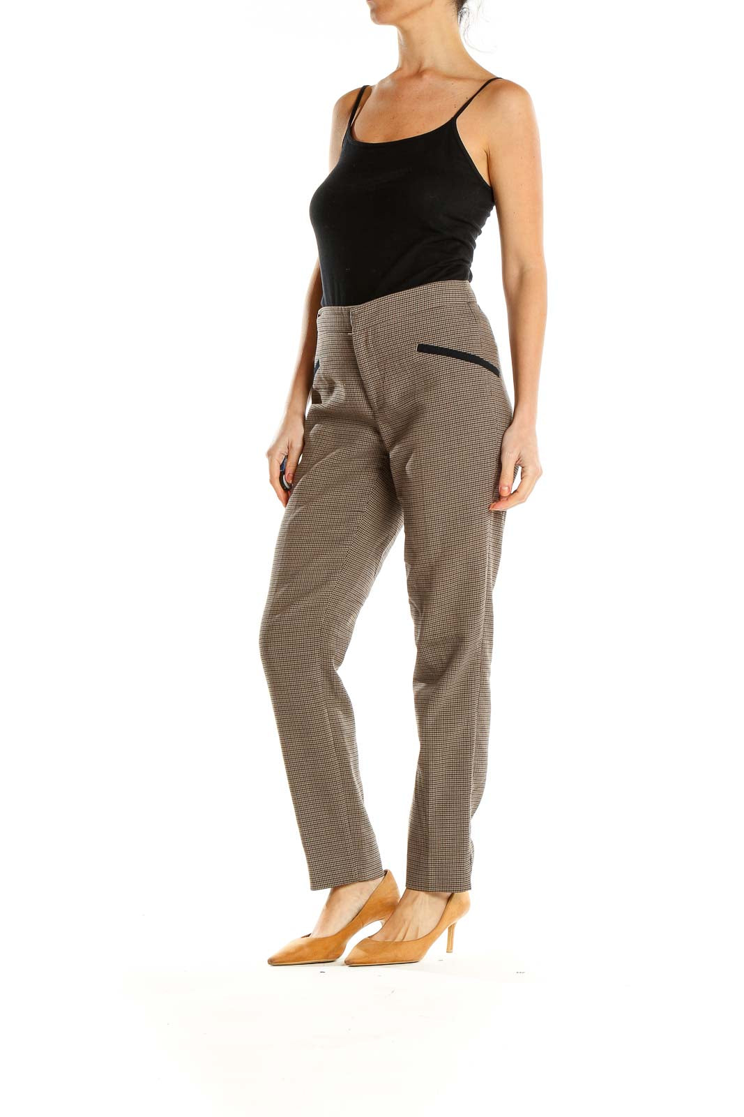 Brown Plaid All Day Wear Trousers