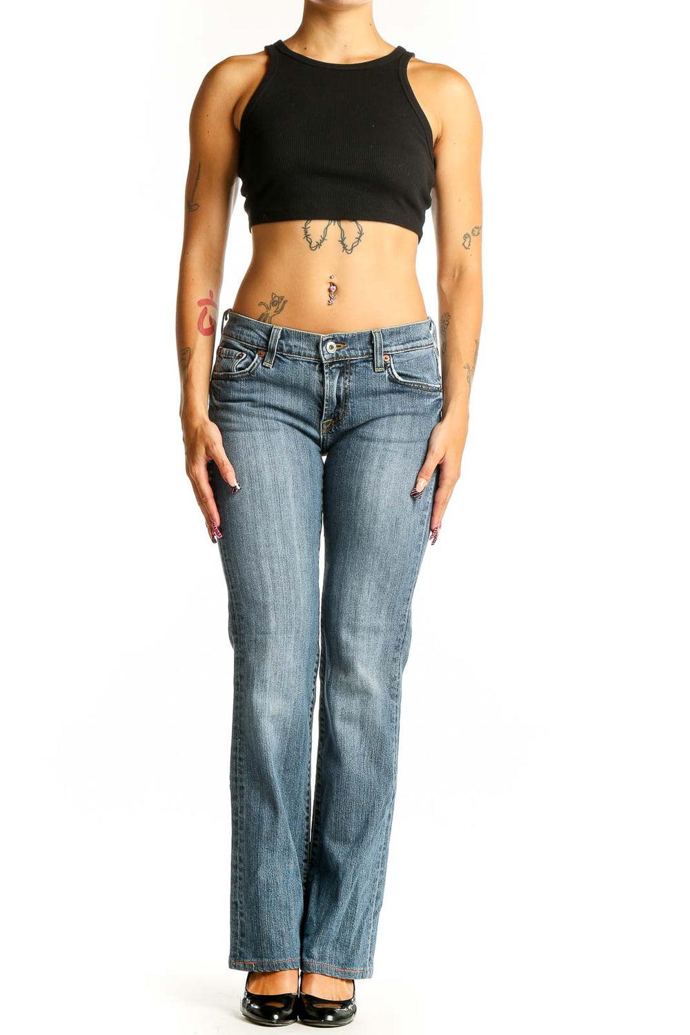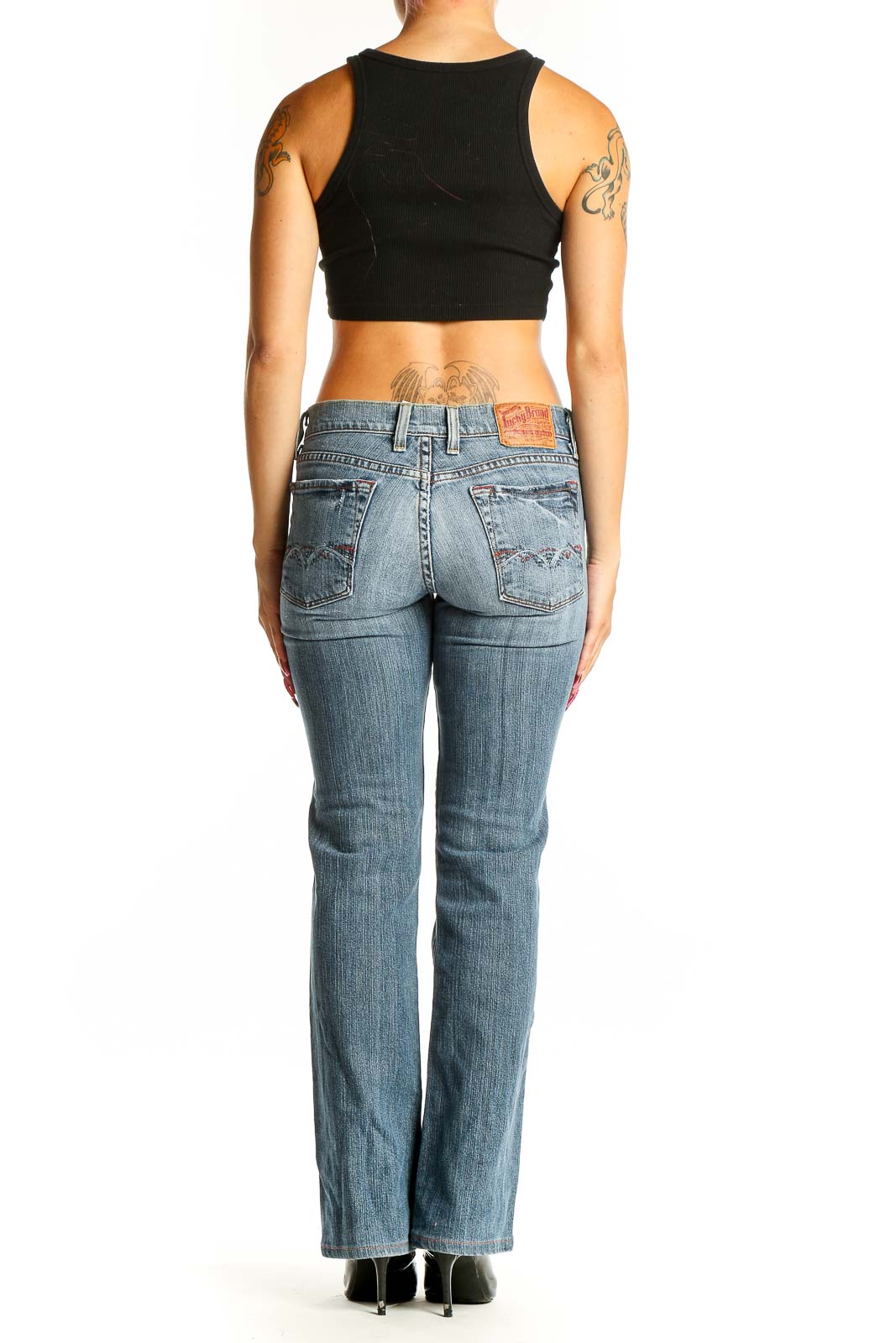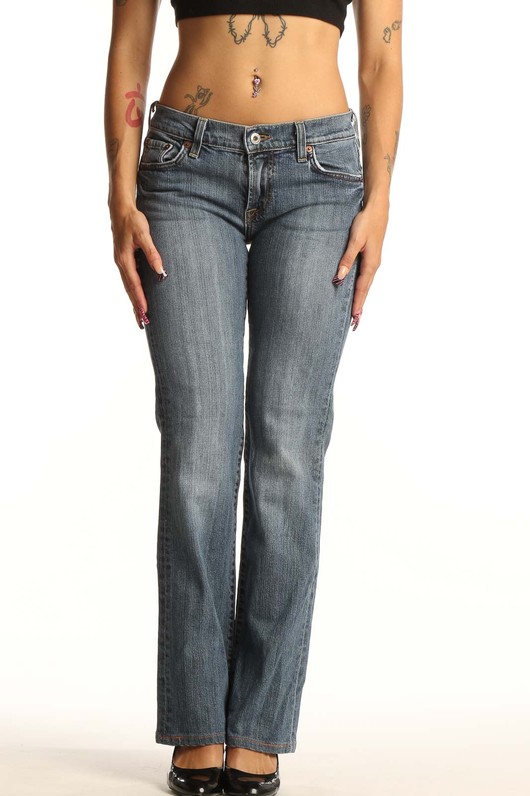 Step out in style with these classic blue denim bootcut jeans from Lucky Brand. Crafted from a comfortable blend of cotton and LYCRA® Elastane, these jeans offer both durability and stretch for all-day comfort. The bootcut silhouette flatters various body types, creating a balanced look from hip to hem. With a mid-rise waist and a length of 38 inches, these jeans are perfect for pairing with your favorite tops and shoes. The excellent condition speaks to their quality and care, making them a reliable addition to your wardrobe. Featuring traditional five-pocket styling and subtle fading for a lived-in look, these Lucky Brand jeans effortlessly combine casual cool with timeless appeal.