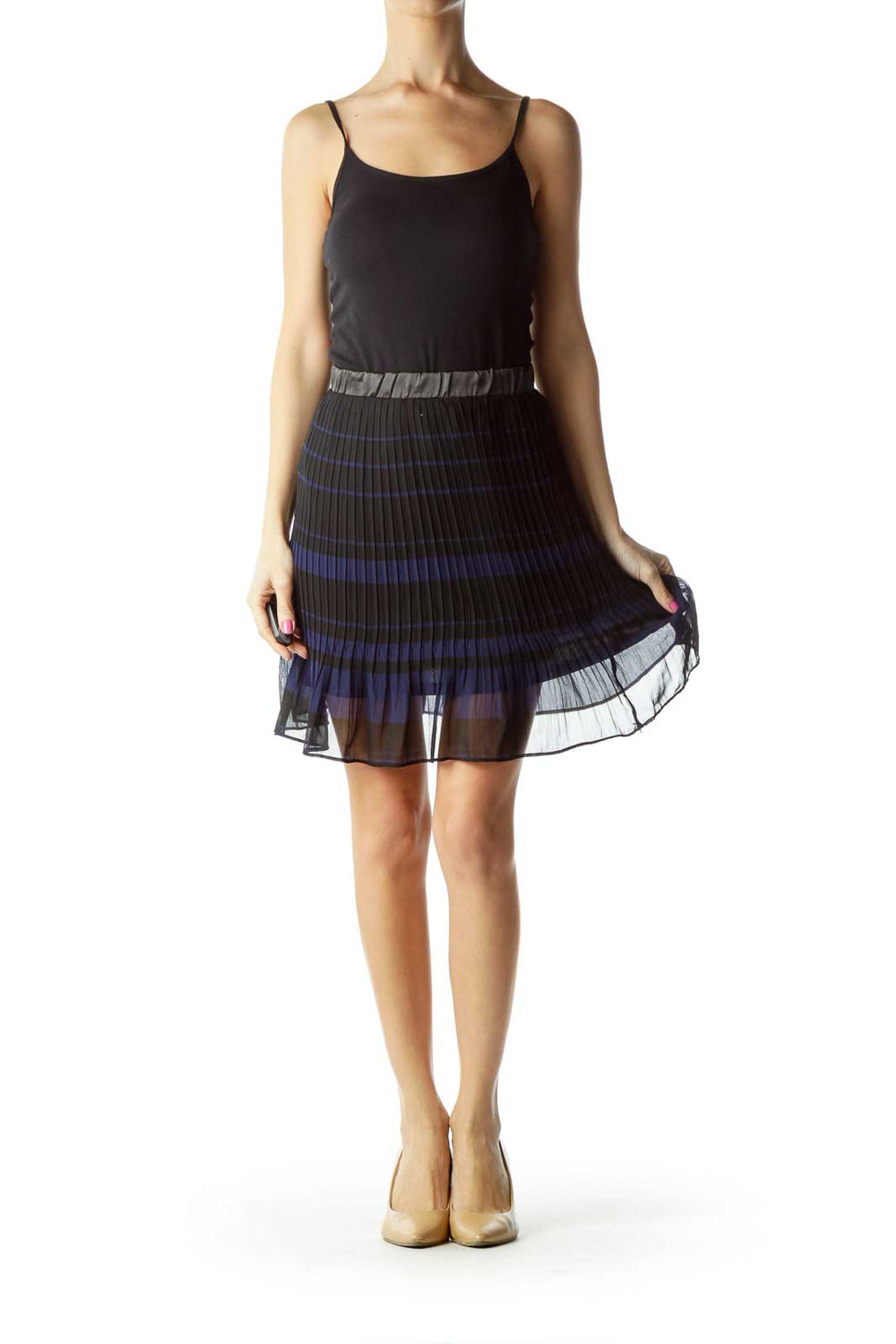 Black Blue Pleated Skirt