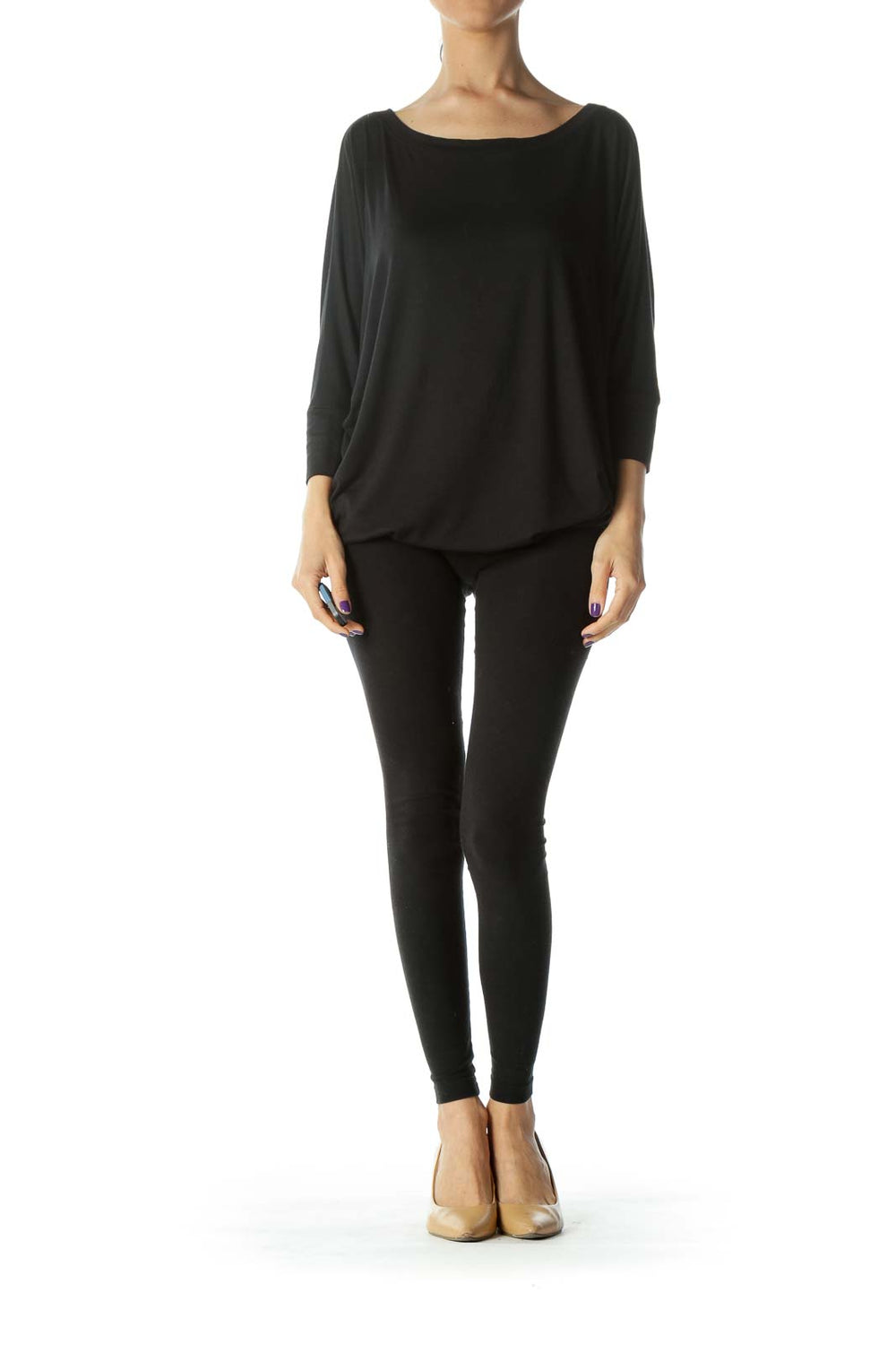 Black Round-Neck Bat-Sleeves Soft Stretch Jersey Top