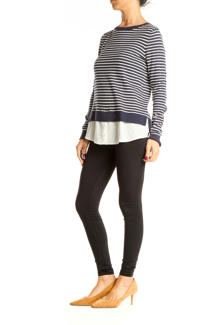 Blue Striped Casual Top