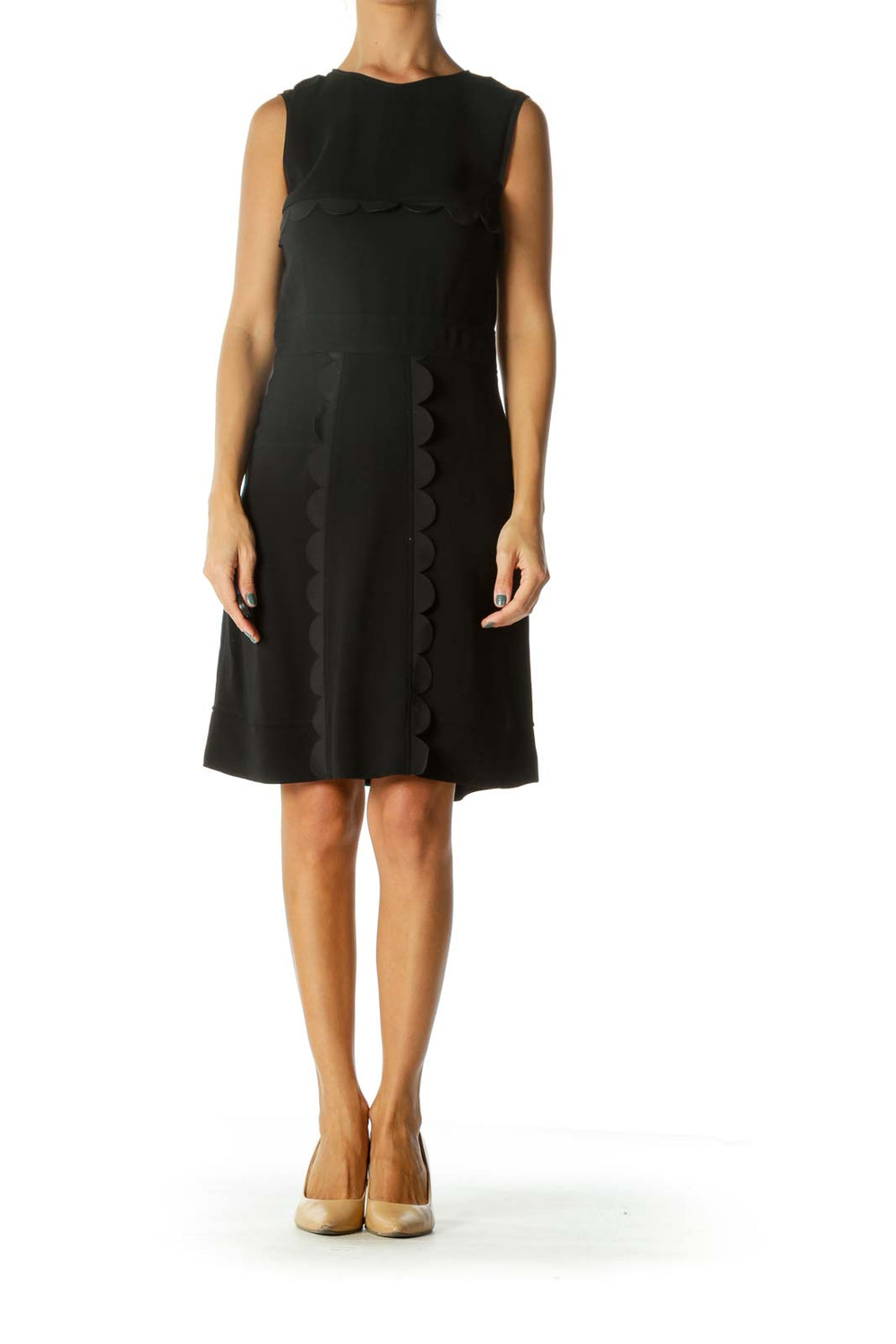 Black Silk Blend Designer Scalloped Detail Cocktail Dress
