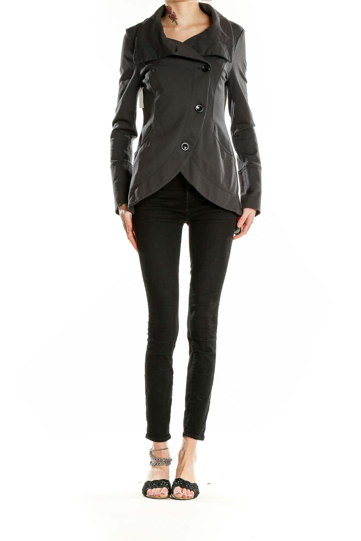 Elevate your outerwear collection with this sophisticated gray coat from White House Black Market. Crafted with a unique blend of materials including rayon, nylon, and spandex, this coat offers both comfort and style. The asymmetrical button-front design adds a modern twist to the classic coat silhouette, while the wide collar provides extra warmth and a touch of elegance.