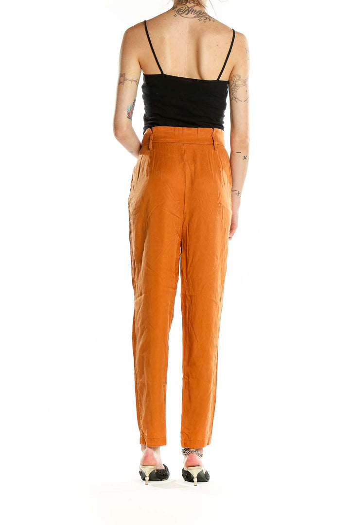 Step into style with these eye-catching orange high-waisted trousers from Socialite. The vibrant hue makes a bold statement, perfect for adding a pop of color to your wardrobe. Featuring a flattering high-waisted design with pleats, these pants offer both comfort and sophistication. The wide-leg silhouette provides a relaxed fit, ideal for both casual and semi-formal occasions. With a generous 40" length, these trousers create an elongating effect, suitable for taller frames or those who prefer a longer line. The excellent condition ensures you'll look polished and put-together every time you wear them. Pair these striking trousers with a simple top to let them take center stage in your outfit.