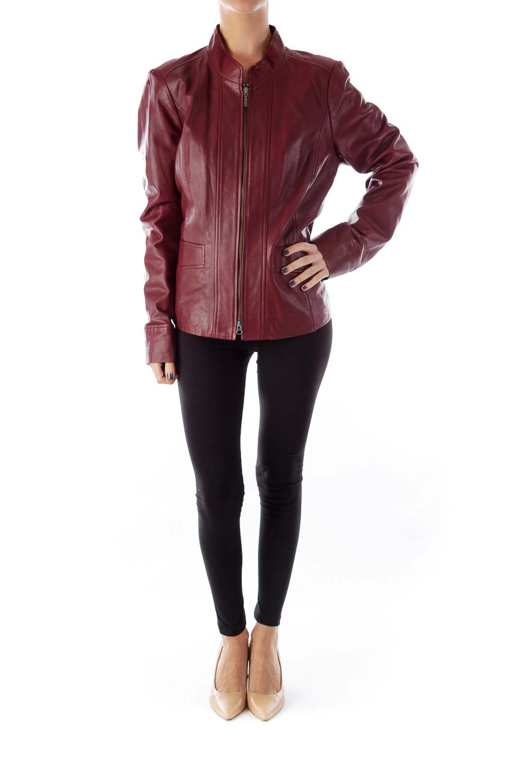 Burgundy Leather Pocket Jacket