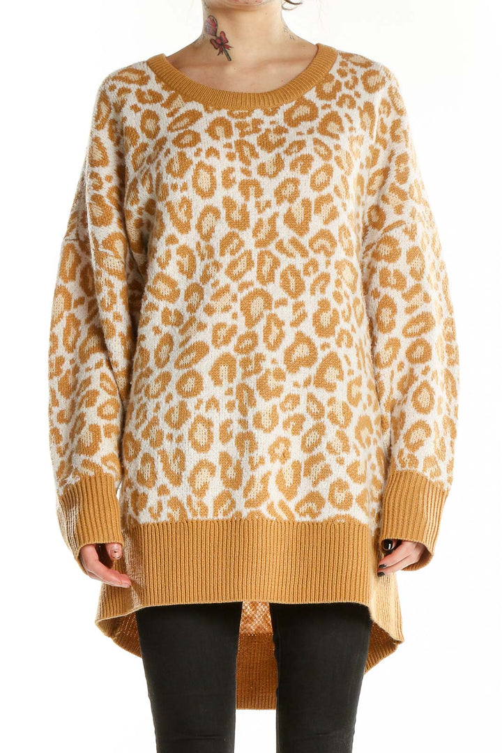 Make a bold statement with this eye-catching camel leopard print oversized sweater from Torrid. Crafted from a cozy blend of acrylic and nylon, this knit sweater offers both warmth and style. The relaxed fit and dropped shoulders create a comfortable, trendy silhouette that's perfect for casual outings or lounging at home. The vibrant leopard pattern in shades of camel and cream adds a fierce touch to your wardrobe, while the ribbed crew neckline, cuffs, and hem provide a polished finish. With its generous 3X sizing and ample measurements, this sweater ensures a flattering fit for curvy figures. The high-low hemline adds an extra touch of modern flair, making this piece a versatile addition to your cold-weather wardrobe.