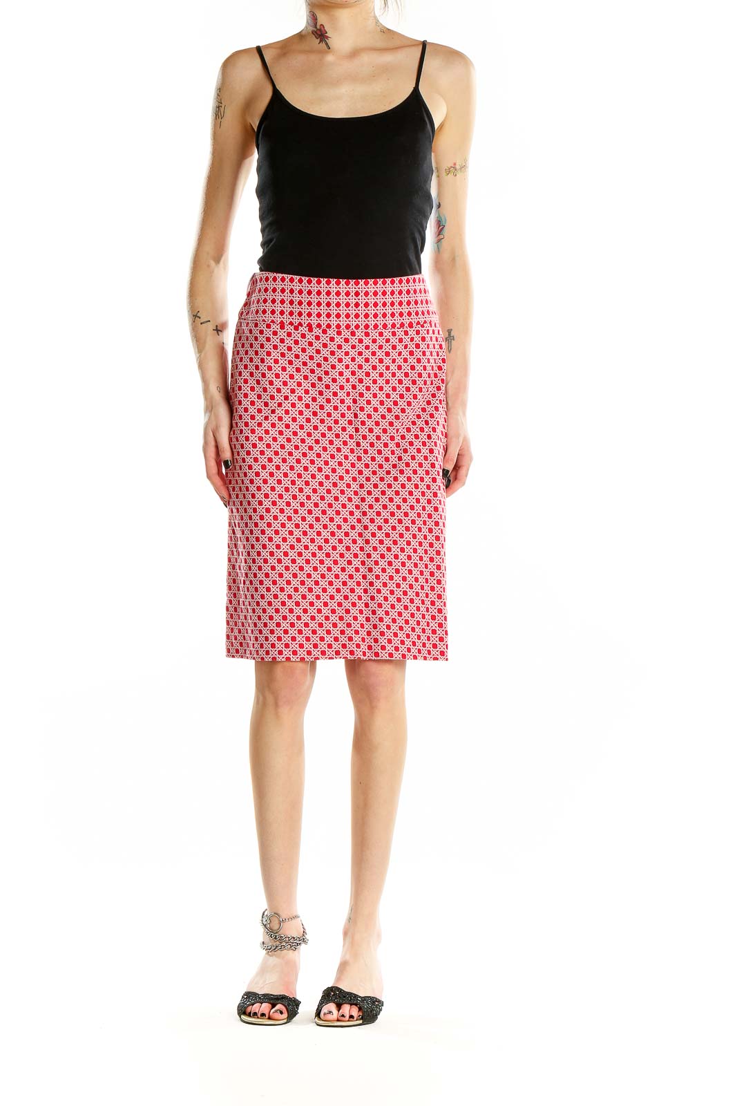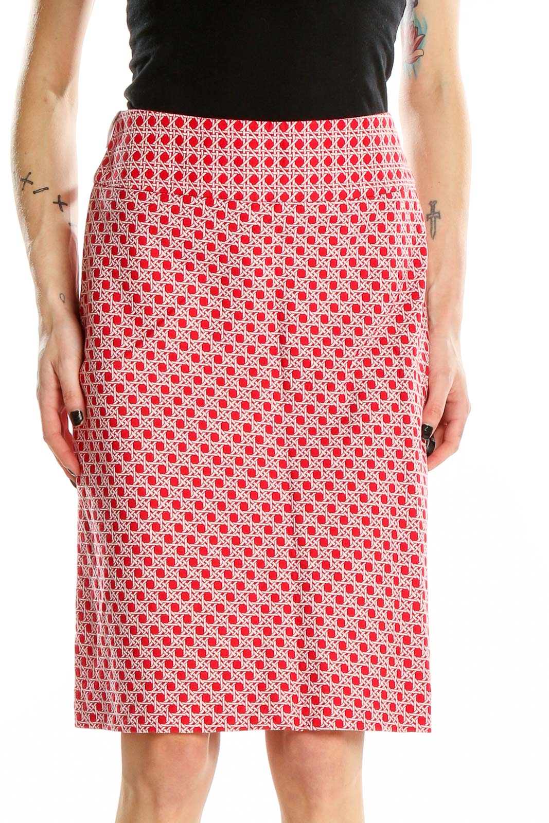Make a stylish statement with this eye-catching red and white geometric print pencil skirt from Talbots. The bold pattern features an intricate lattice design that adds a touch of sophistication to your wardrobe. Crafted from a comfortable cotton-polyester blend, this skirt offers both style and practicality for all-day wear.