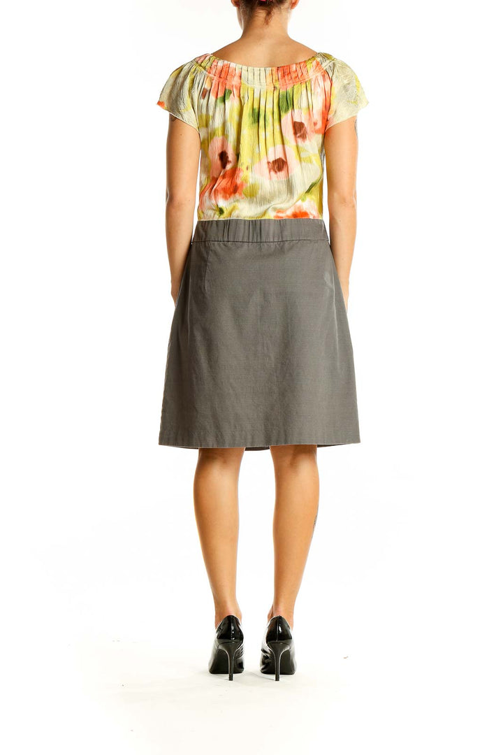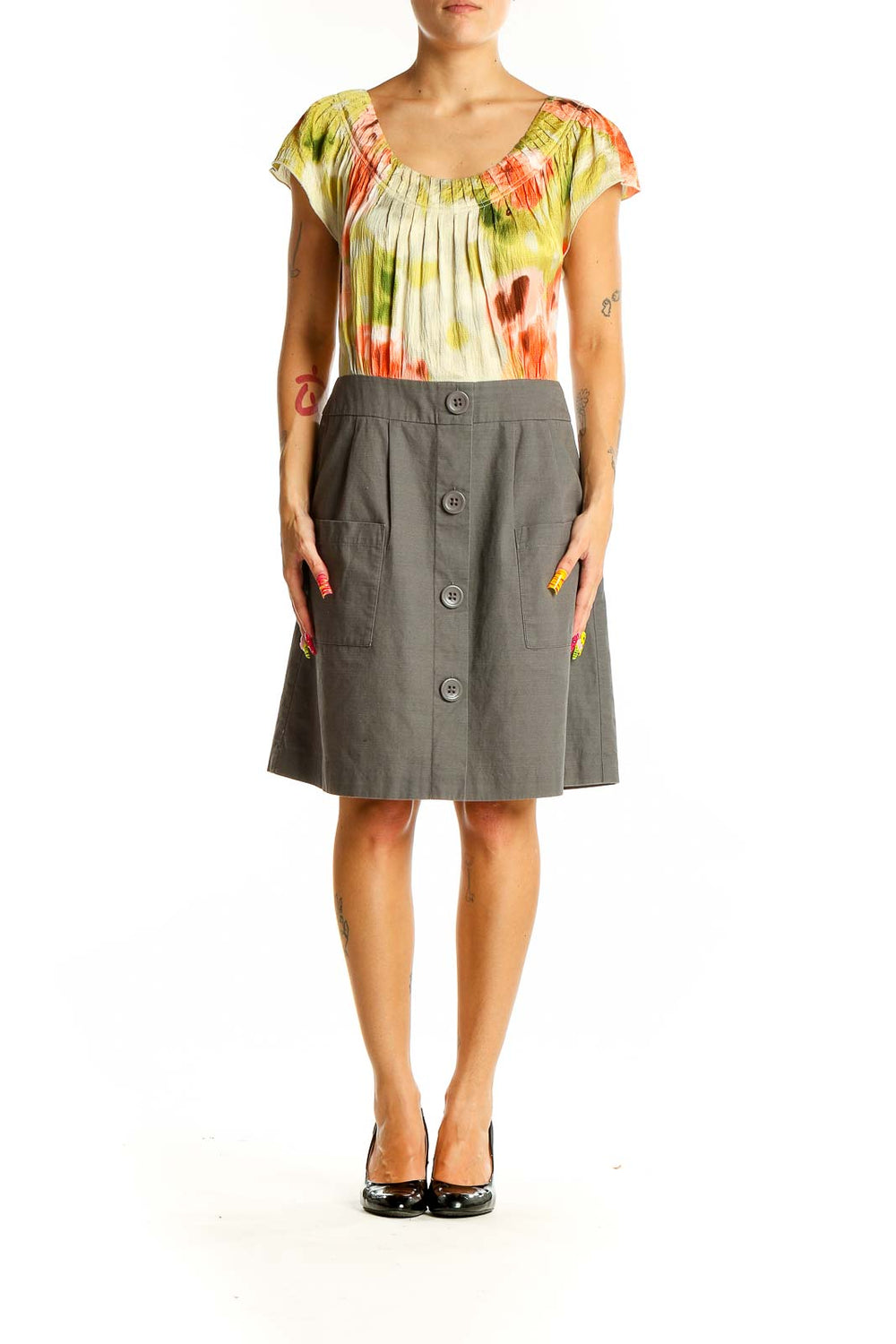 Make a statement with this vibrant Tabitha dress, perfect for any summer occasion. The eye-catching multicolor floral print on the bodice features a beautiful blend of yellow, green, and coral hues, creating a lively and feminine look. The pleated scoop neckline adds a touch of elegance and flatters the décolletage.