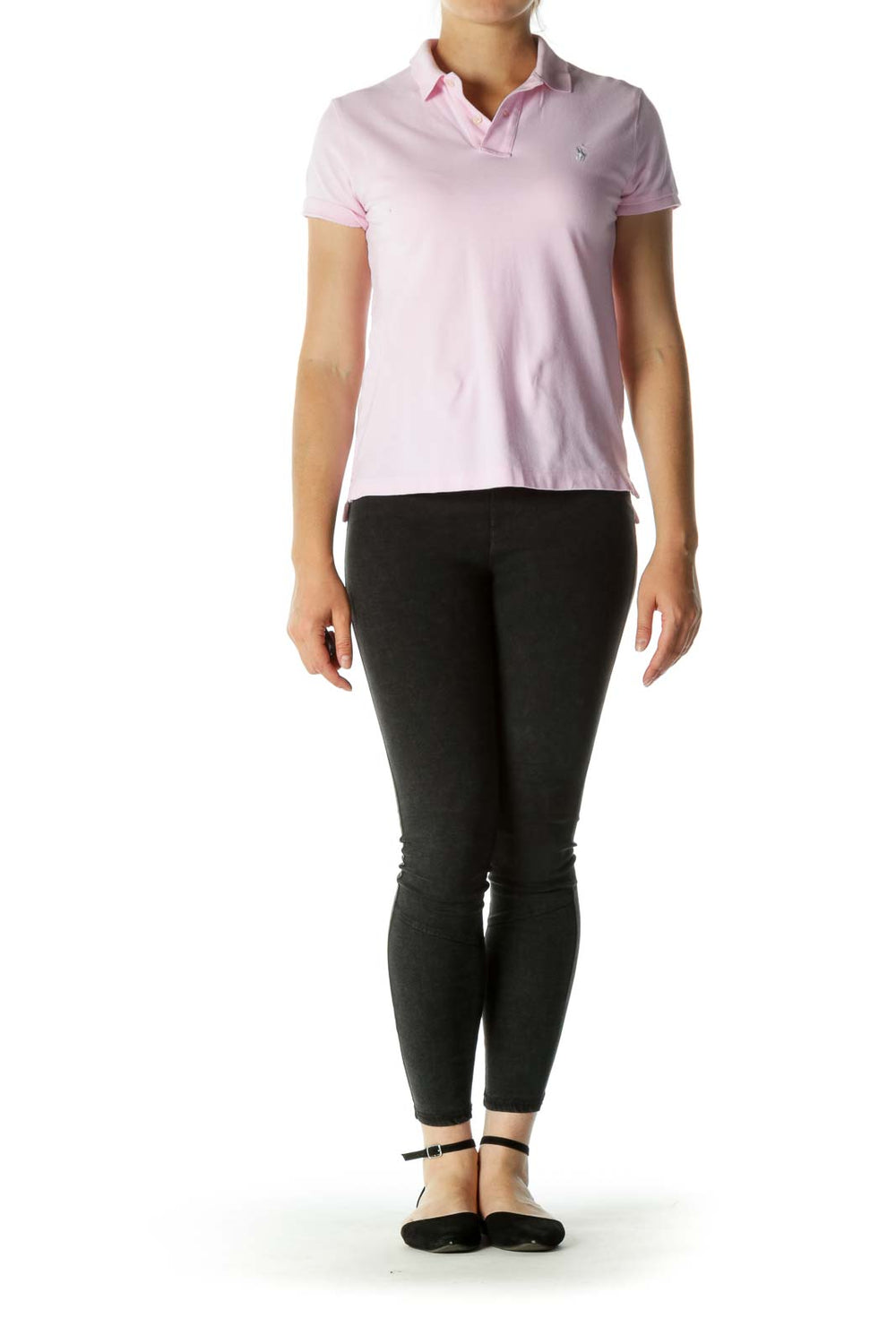 Pink V-neck Short Sleeve Polo Shirt (Car Make Logo Embroidery on Sleeve)