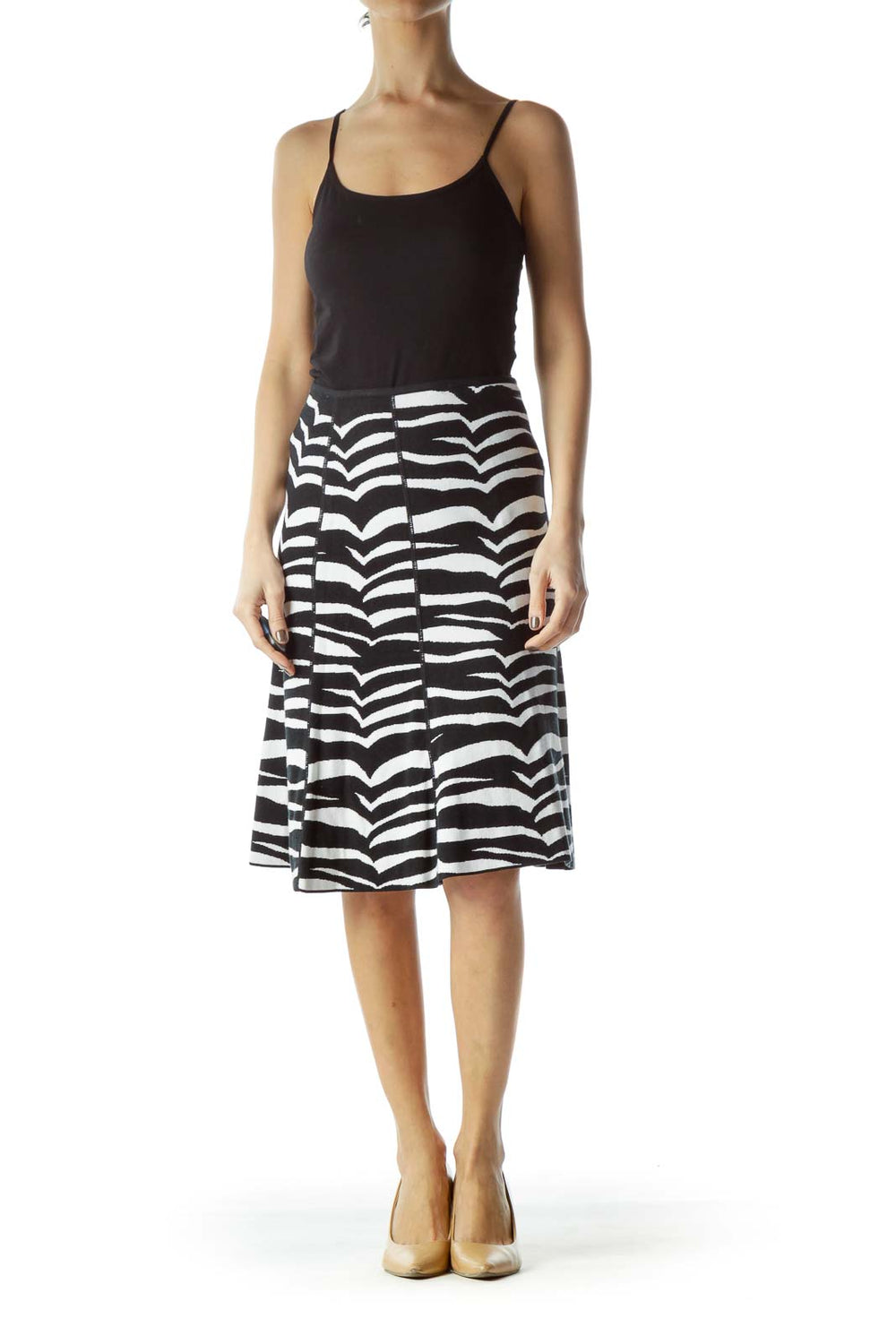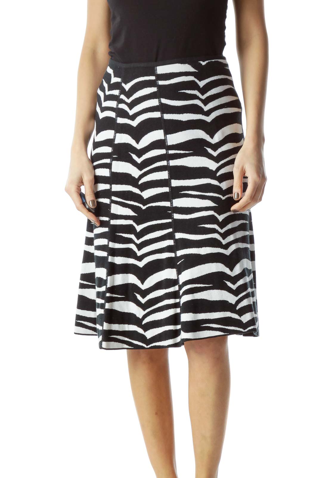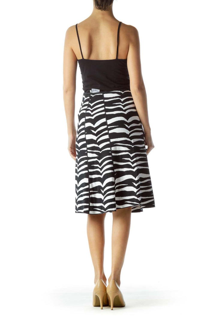 Black White Textured Print Knit Flared Skirt