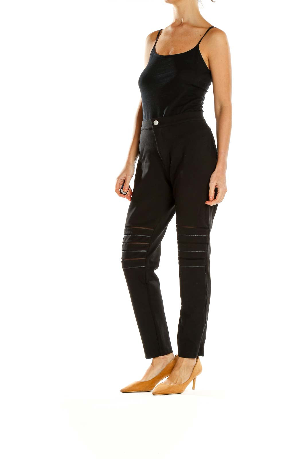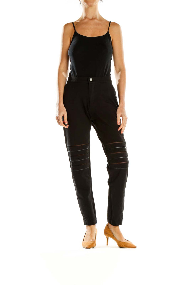 Step into sophistication with these sleek black pants from Tart. Crafted with a modern edge, these pants feature eye-catching mesh detailing along the thighs, adding a touch of allure to your ensemble. The high-waisted design elongates your silhouette, while the tapered leg creates a flattering fit that's perfect for both office wear and evening outings. Made from a comfortable, stretchy fabric that hugs your curves in all the right places, these pants offer both style and comfort. The excellent condition speaks to their quality and durability. With measurements of 30" waist, 36" hips, and 29" length, these size Large pants are designed to fit and flatter. Pair them with a sleek blouse and heels for a chic, put-together look that's sure to turn heads.