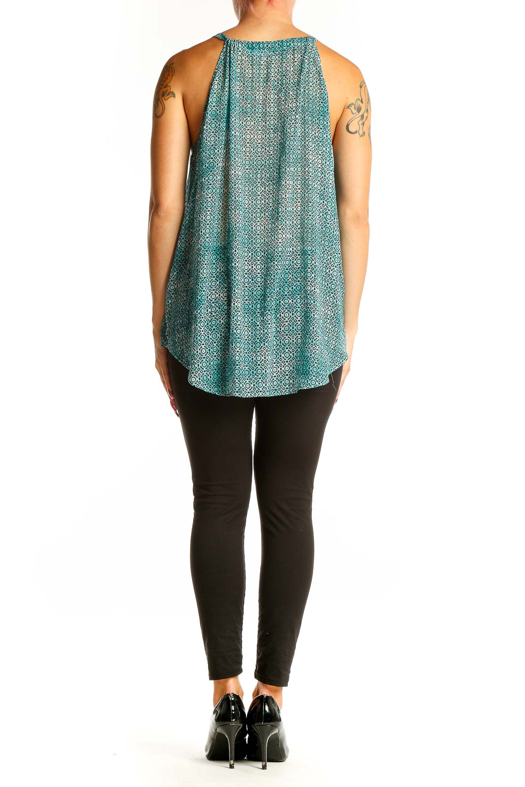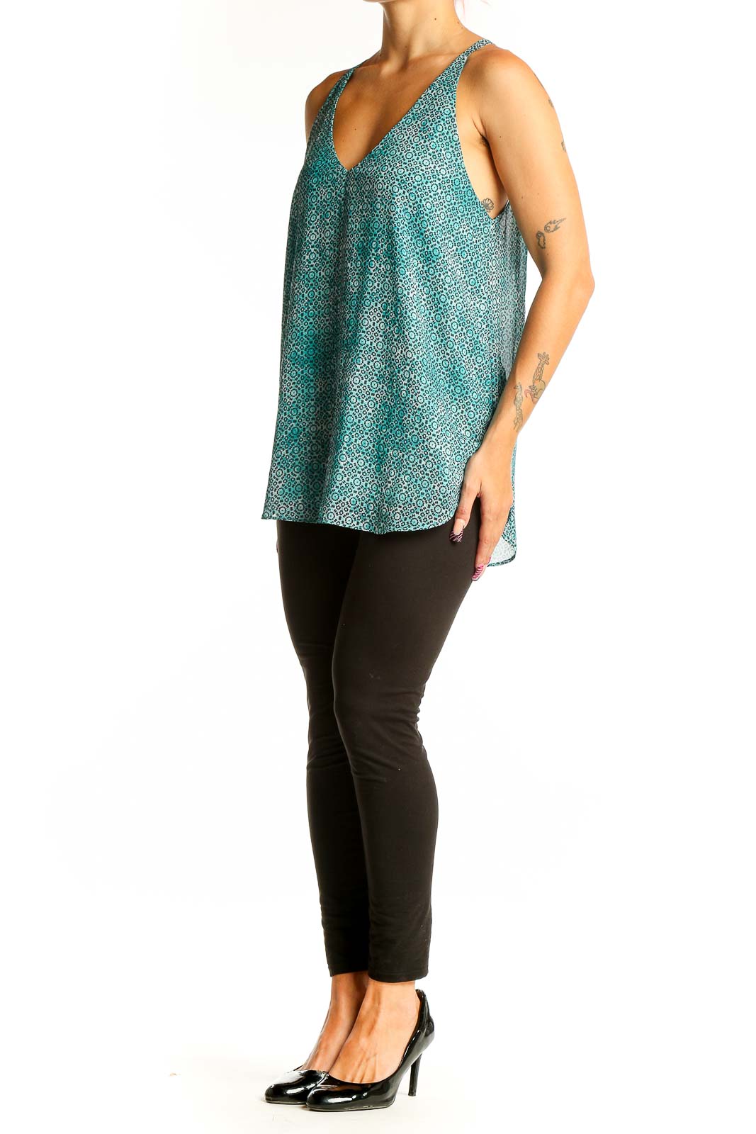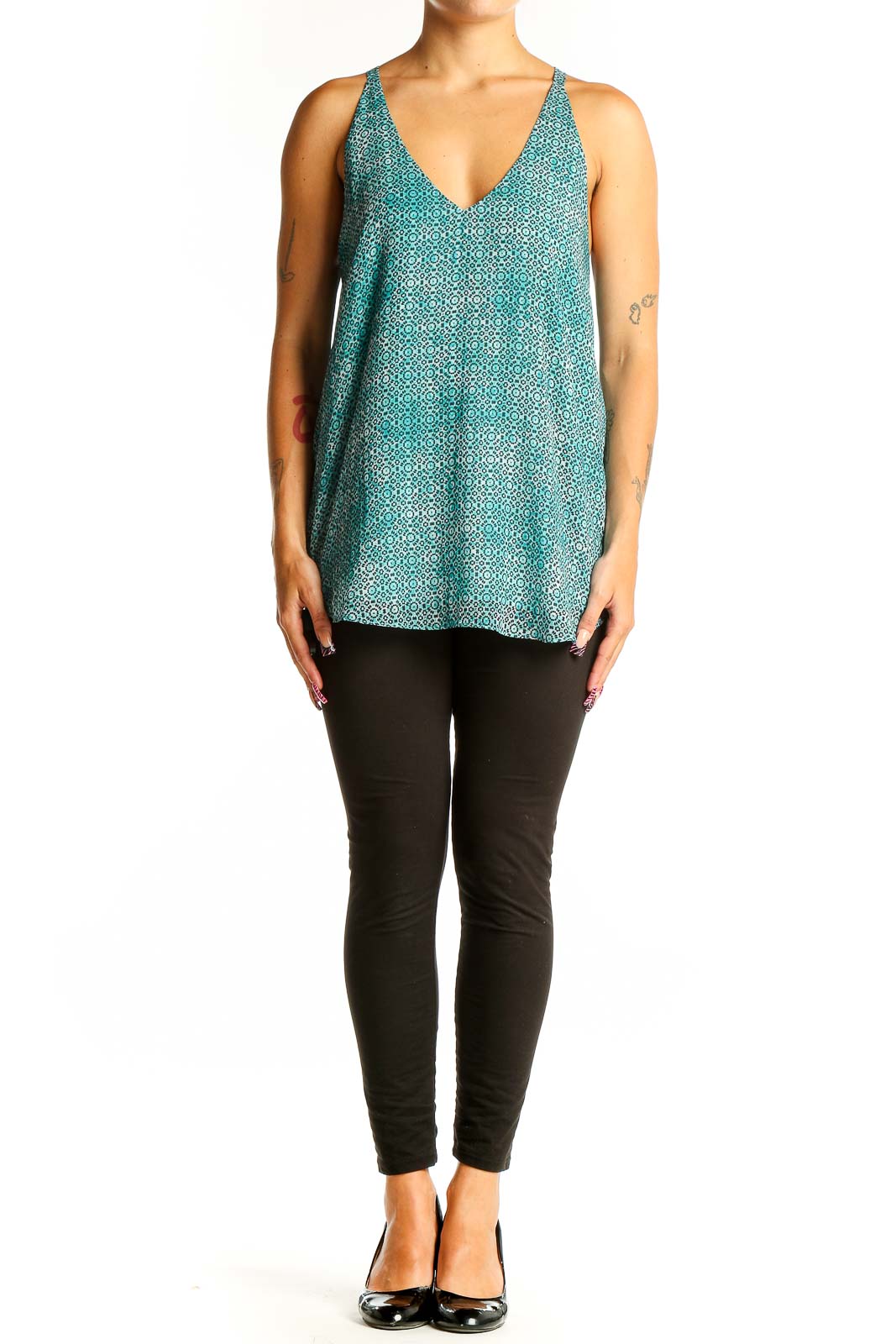 Elevate your summer wardrobe with this stunning teal geometric print tank top by Tart. This eye-catching piece features a flattering V-neckline and a relaxed, flowy silhouette that drapes beautifully over your curves. The all-over geometric pattern in shades of teal and white adds a touch of modern sophistication to your look.