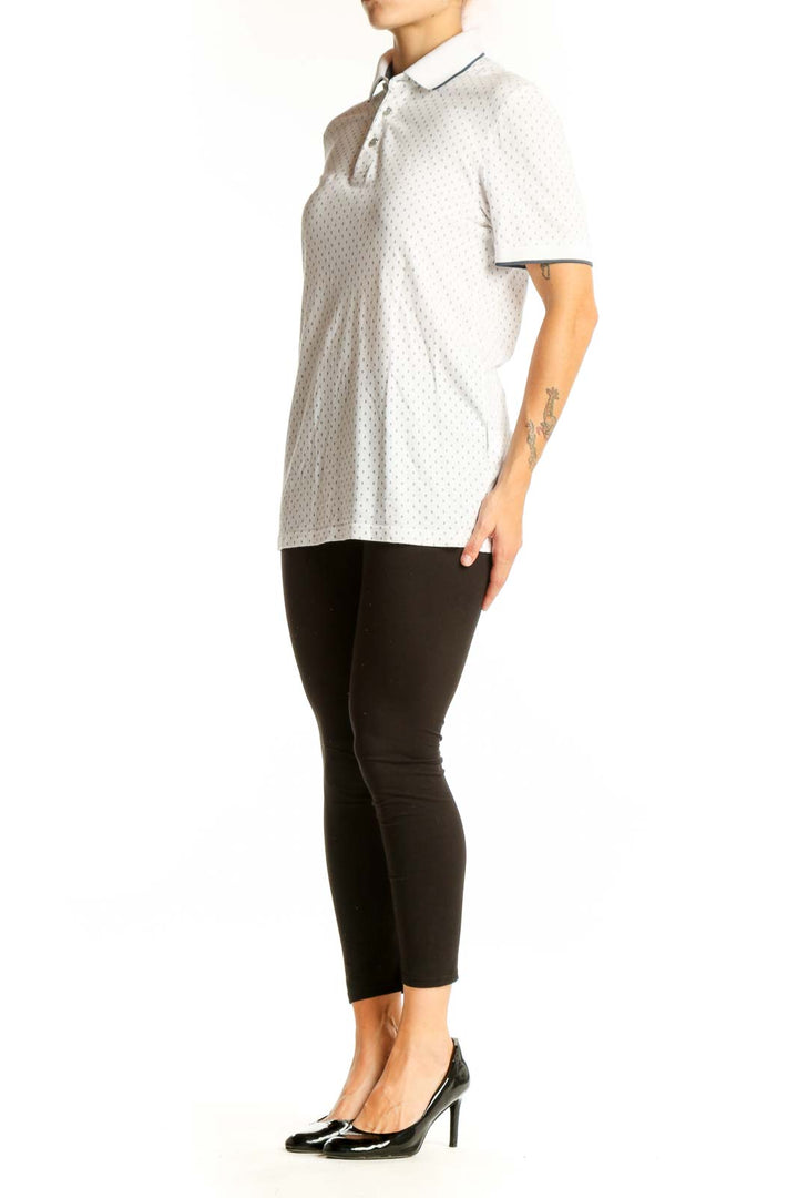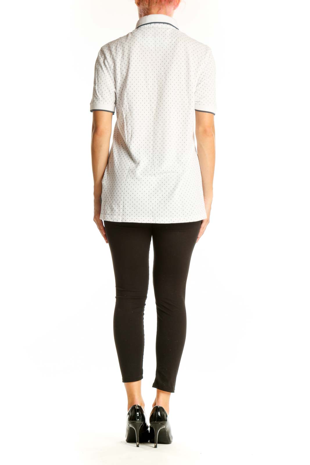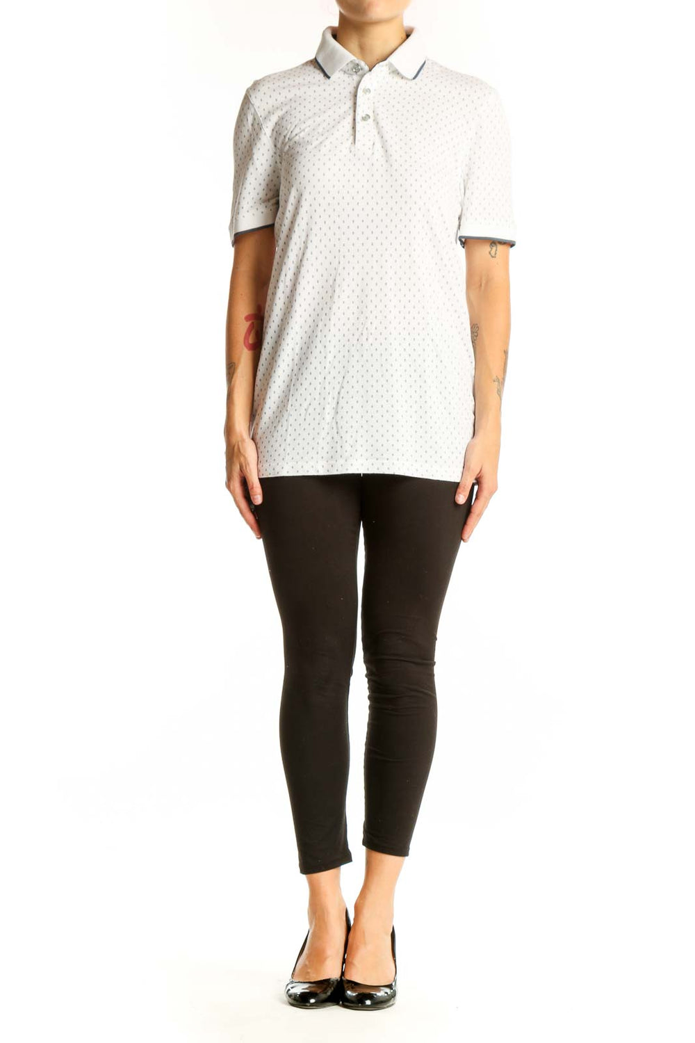 Elevate your casual wardrobe with this sophisticated white polka dot polo shirt from Ted Baker London. Crafted from a luxurious blend of cotton and modal, this top offers both comfort and style. The classic polo design features a subtle all-over polka dot pattern, adding a touch of playfulness to its refined appearance. With its excellent condition and versatile XS size, this shirt is perfect for various occasions. The short sleeves and traditional collar make it ideal for warm weather or layering. The shirt's measurements (Bust 34", Length 27", Waist 32") ensure a flattering fit for a smaller frame. Whether paired with jeans for a casual look or dressed up with slacks for a smart-casual ensemble, this Ted Baker London polo is a must-have addition to your closet.
