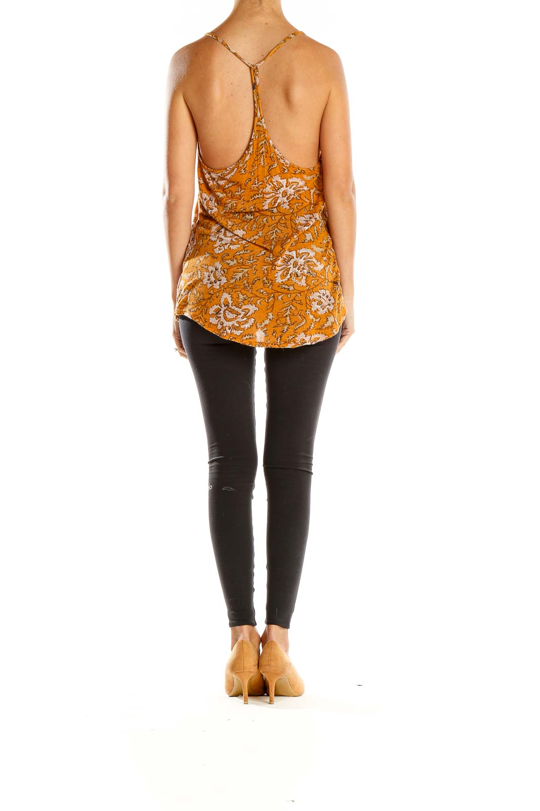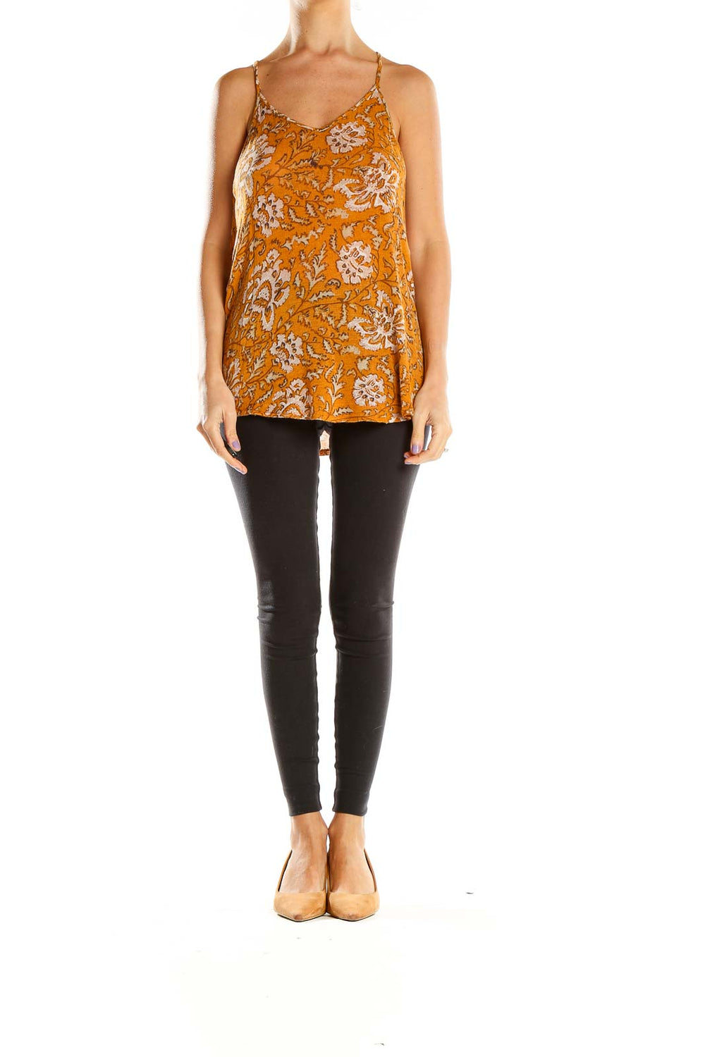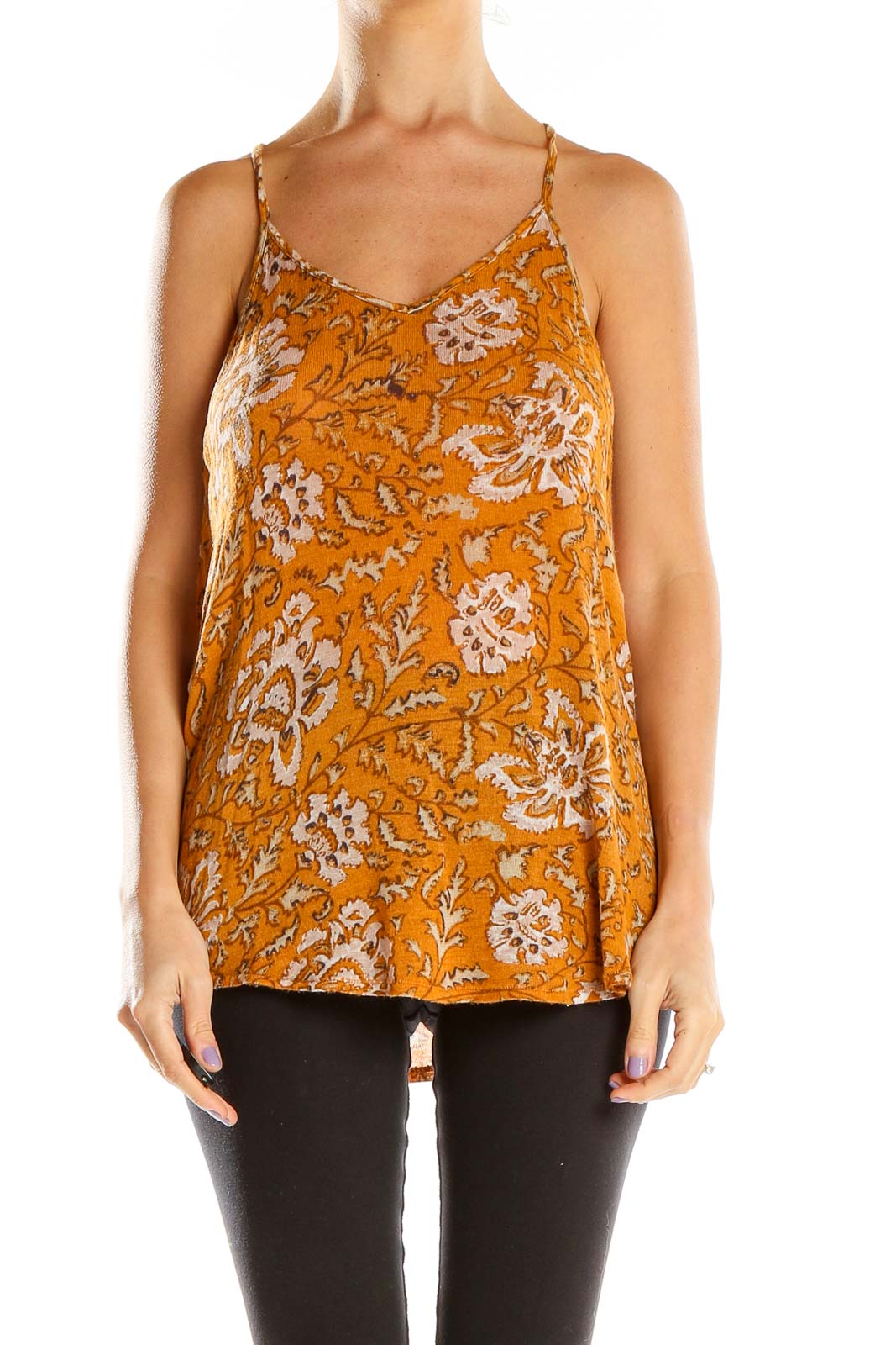 Elevate your summer wardrobe with this charming orange floral print camisole top from Silence + Noise. The vibrant mustard-orange background is adorned with delicate cream-colored floral patterns, creating a stunning visual contrast that's perfect for warm-weather outings.