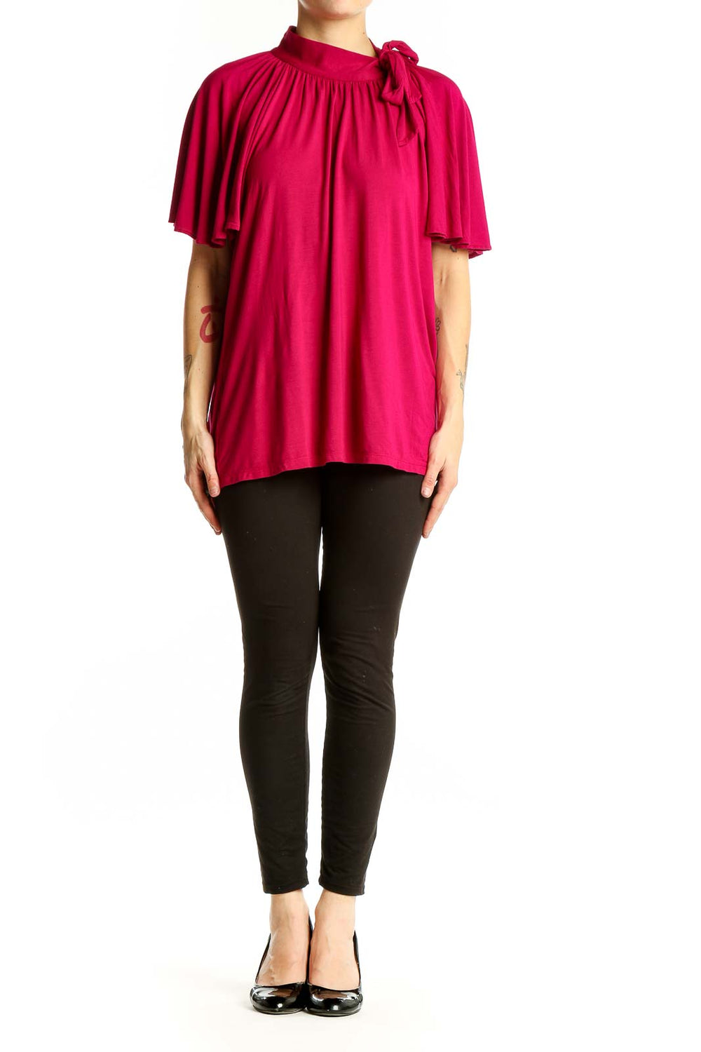 Make a bold statement with this vibrant fuchsia top from Lauren Ralph Lauren. The flowy cape-sleeve design adds a touch of elegance and drama to your outfit, perfect for both casual and dressier occasions. Crafted from a luxurious blend of viscose and elastane, this top offers comfort and ease of movement while maintaining its shape.