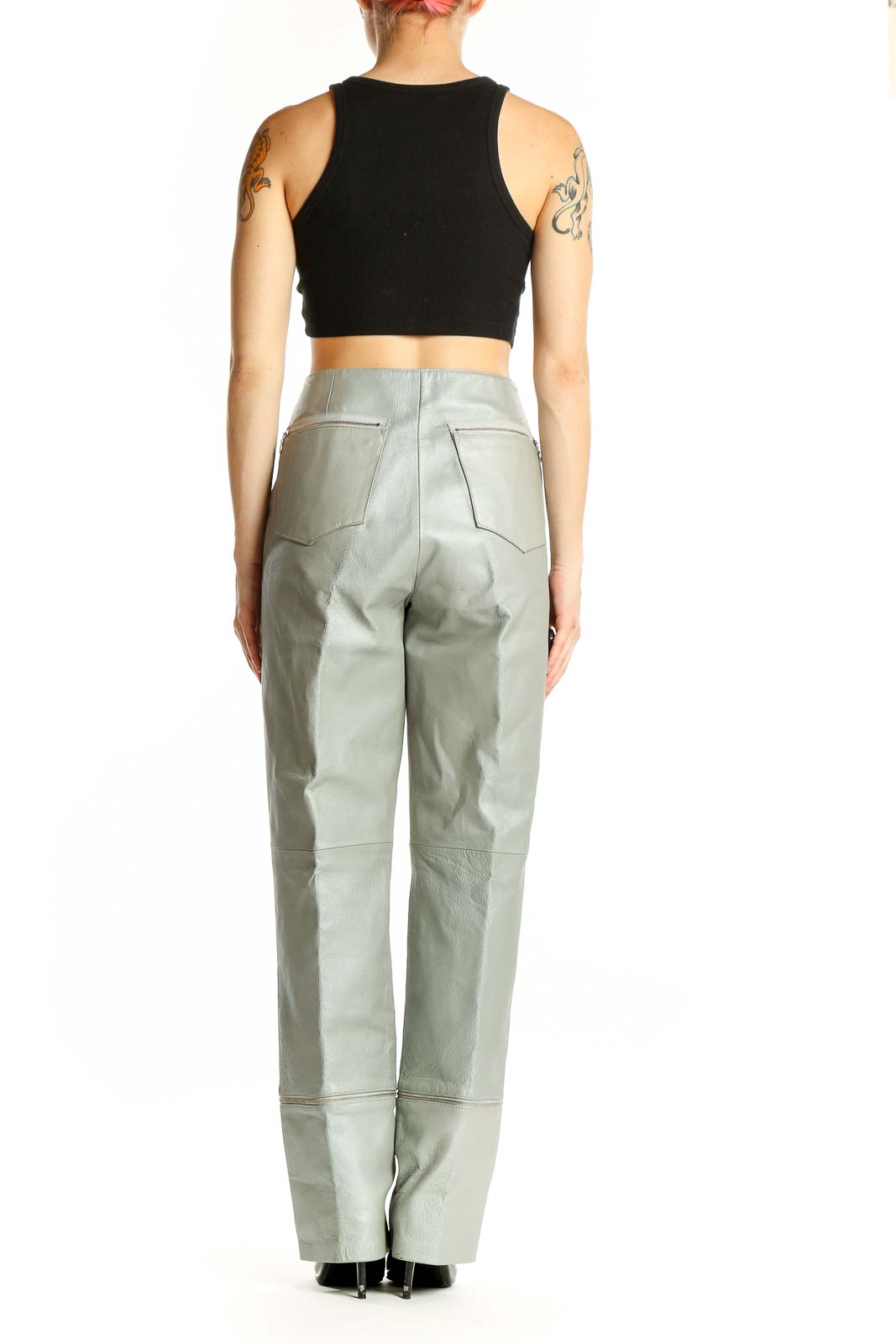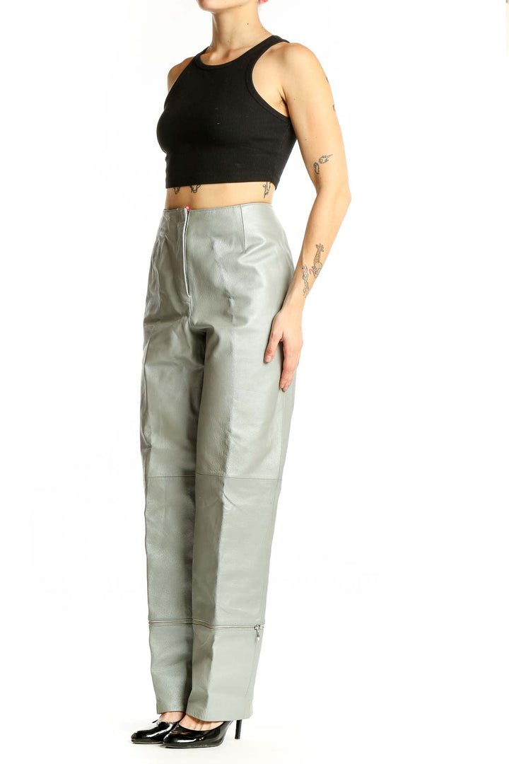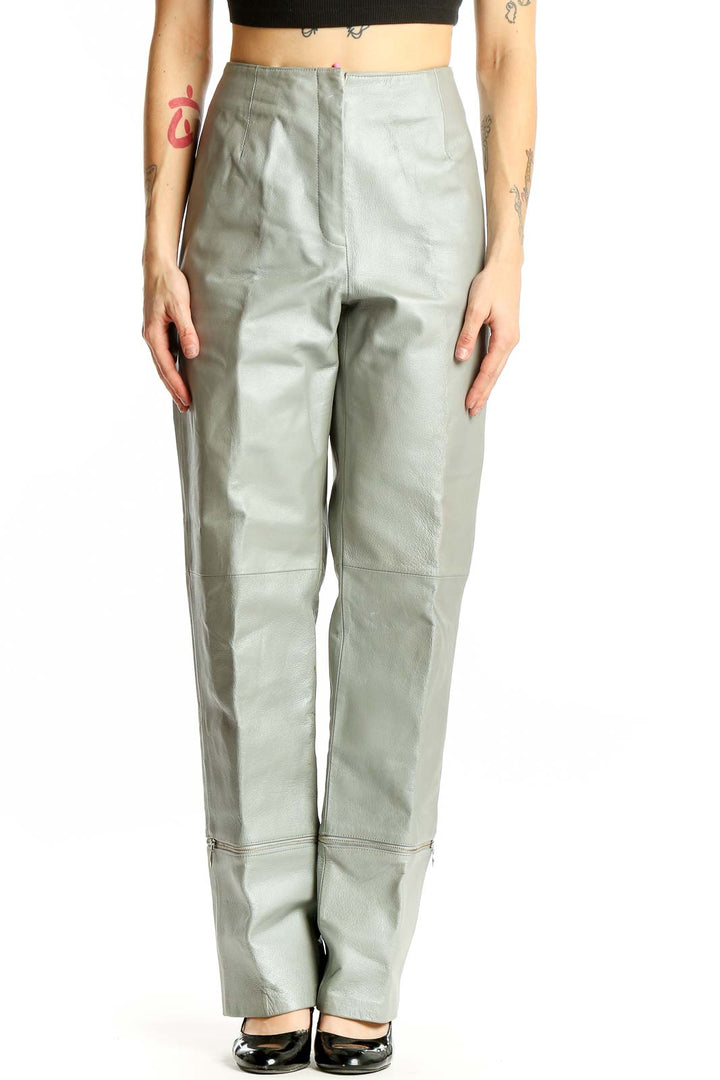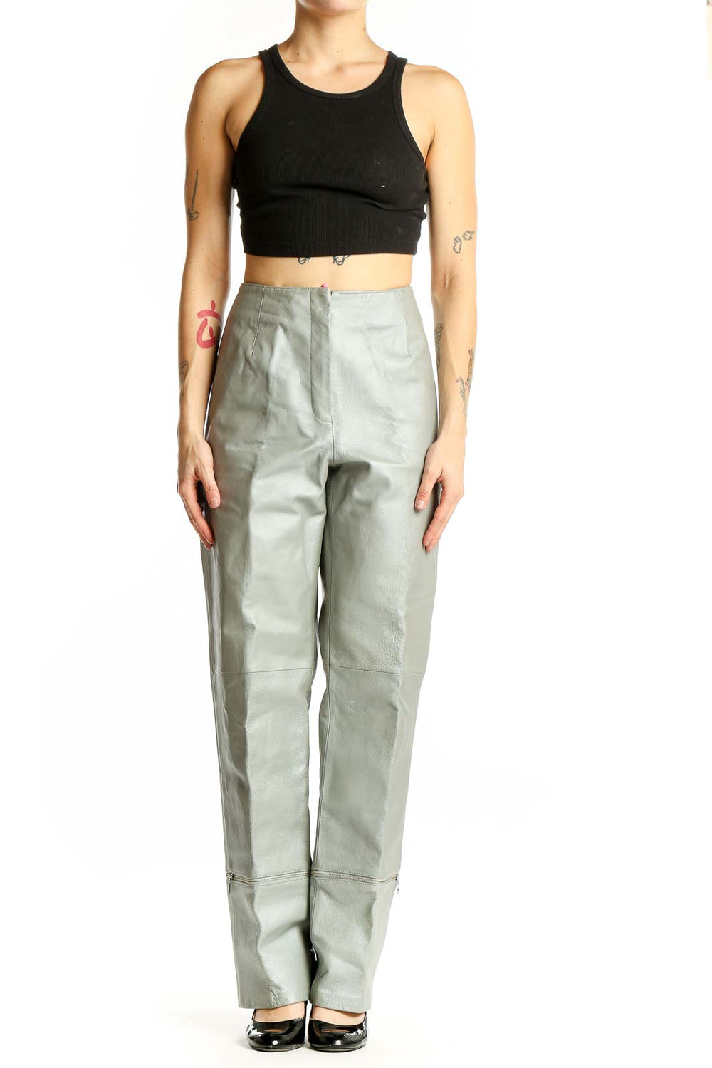 Step into sophistication with these elegant sage green high-waisted pants from metrostyle. Crafted from smooth polyester, these pants offer a sleek and polished look perfect for both office wear and evening outings. The high-waisted design elongates your silhouette, while the straight leg cut provides a classic, timeless appeal. With a generous 40.5" length, these pants are ideal for taller frames or those who prefer a longer inseam. The excellent condition ensures you'll look impeccable from the moment you slip them on. Featuring a comfortable 34" waist and 36" hips, these pants offer a flattering fit for curvy figures. The sage green hue is versatile enough to pair with a variety of tops, making these pants a valuable addition to your wardrobe.