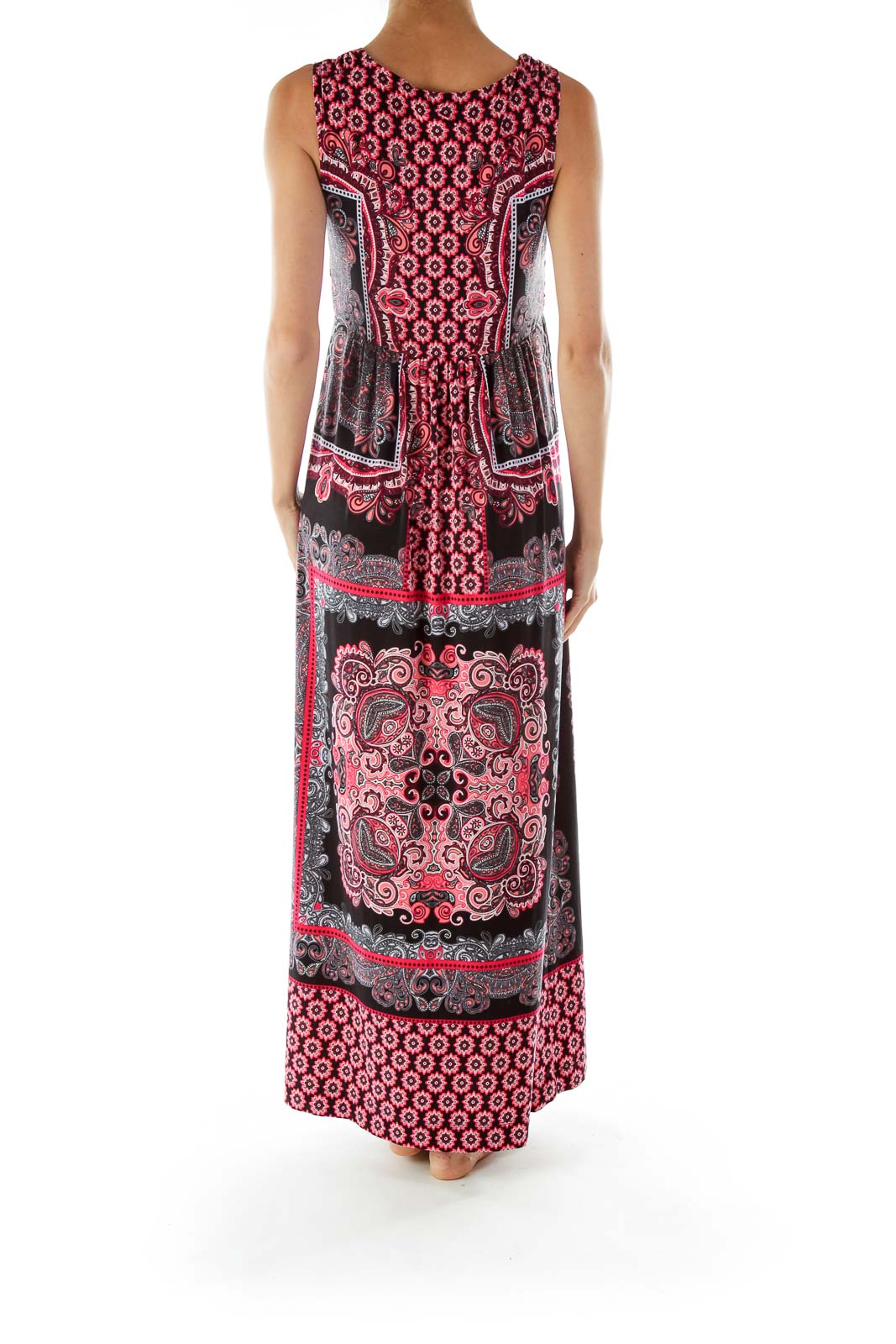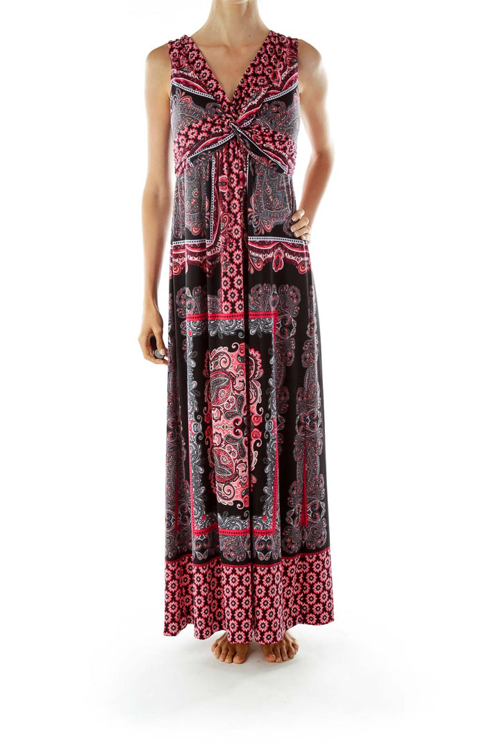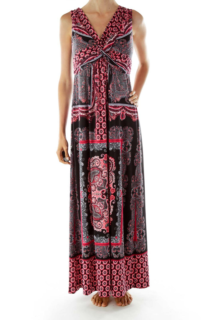 Black Red Paisley Print Maxi Dress