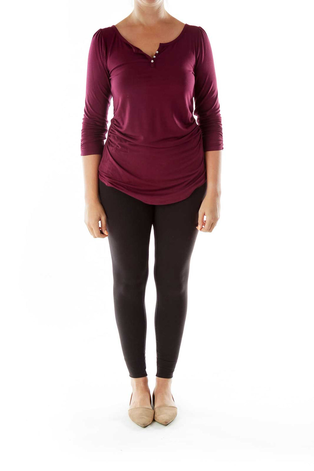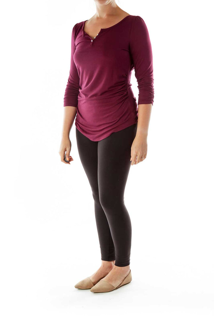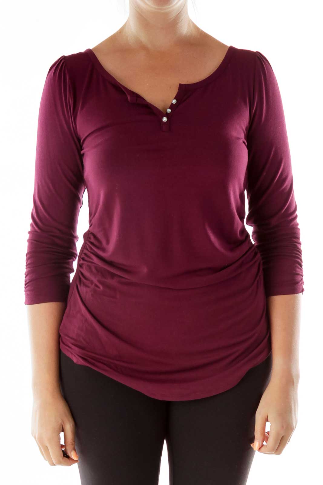 Purple Long-Sleeve T-Shirt w/ Silver Buttons