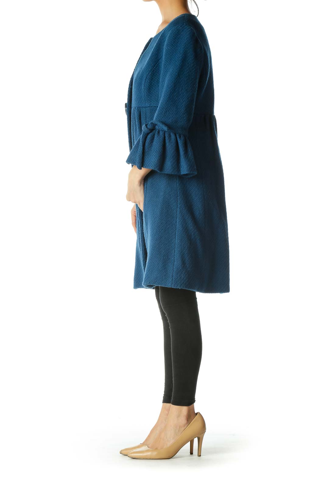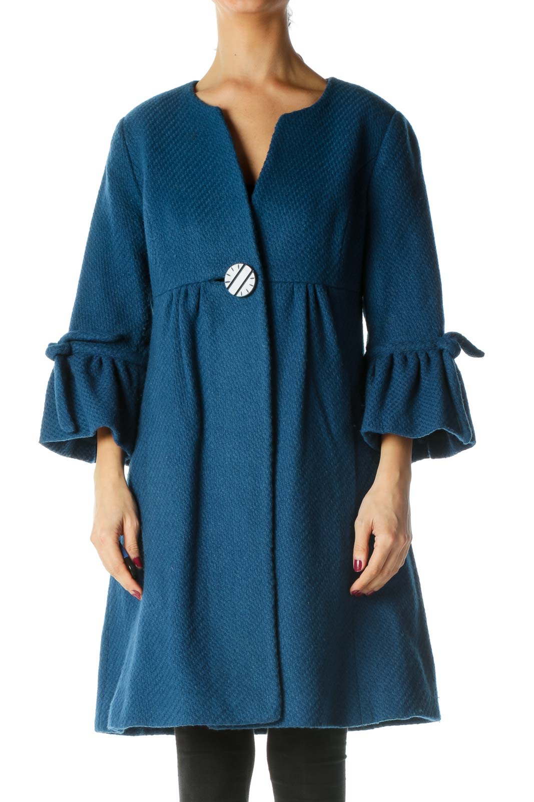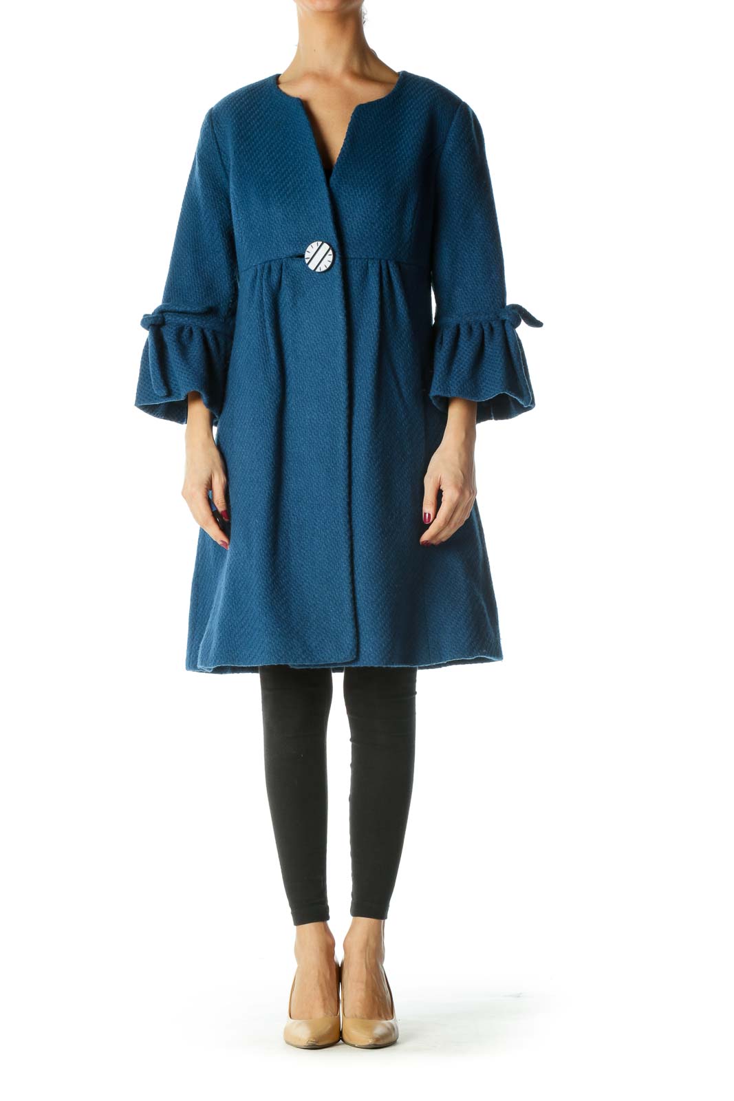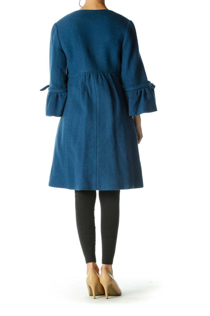 Blue Wool Cotton Round Neck Flared Sleeves Coat