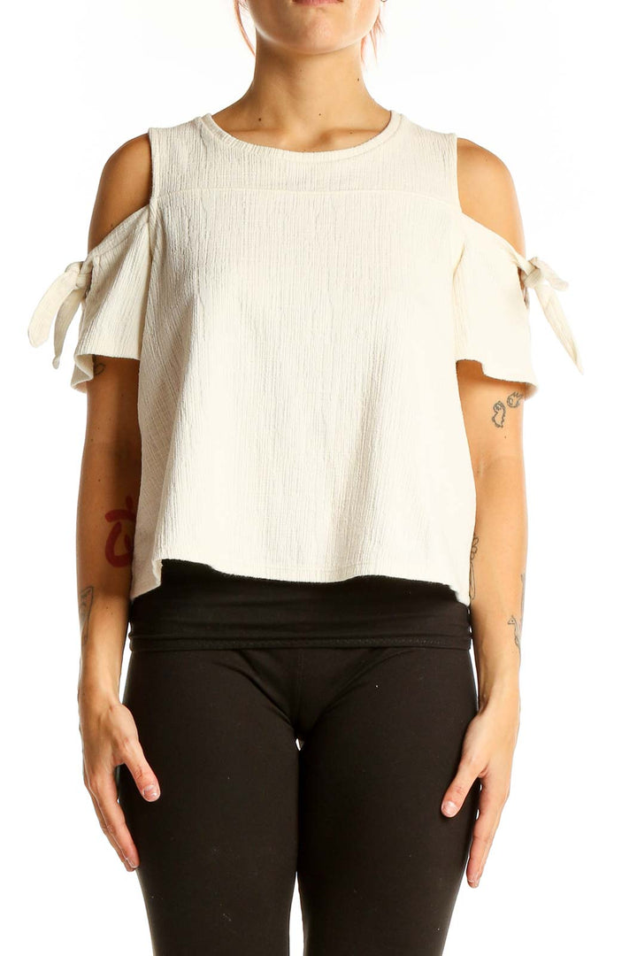 Elevate your casual wardrobe with this charming white cotton top from Madewell. Featuring a trendy cold-shoulder design, this piece combines comfort and style effortlessly. The lightweight, textured cotton fabric offers breathability and a relaxed fit, perfect for warm weather or layering. Delicate tie details at the shoulders add a feminine touch, while the cropped length creates a flattering silhouette. In excellent condition, this versatile top pairs beautifully with jeans, skirts, or shorts for a variety of chic looks.