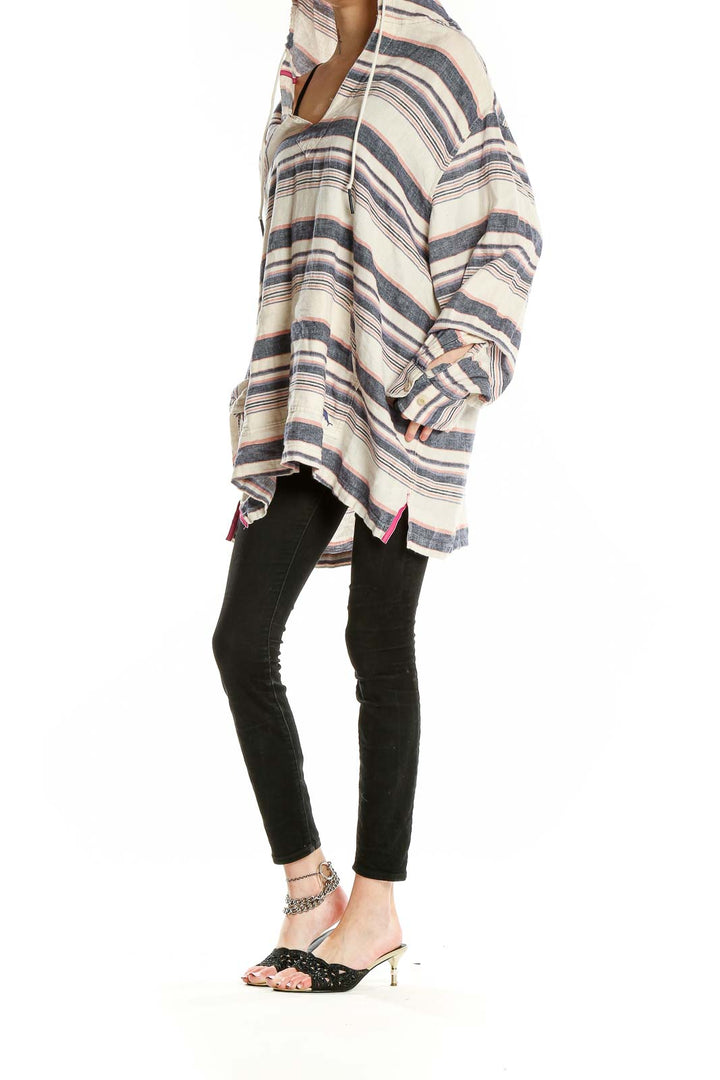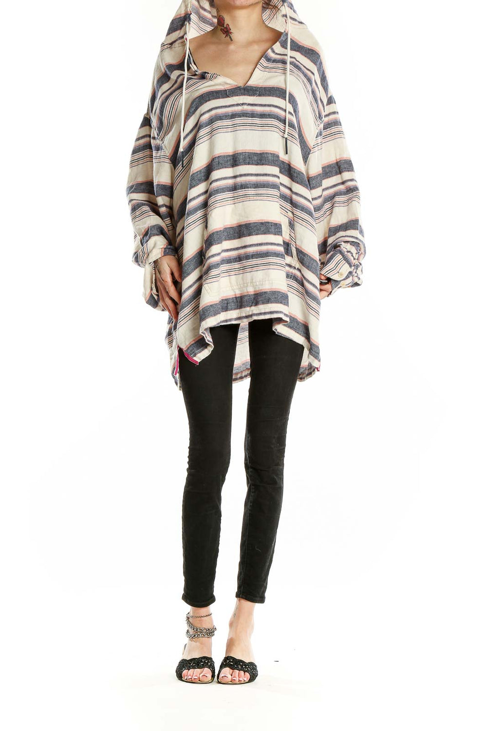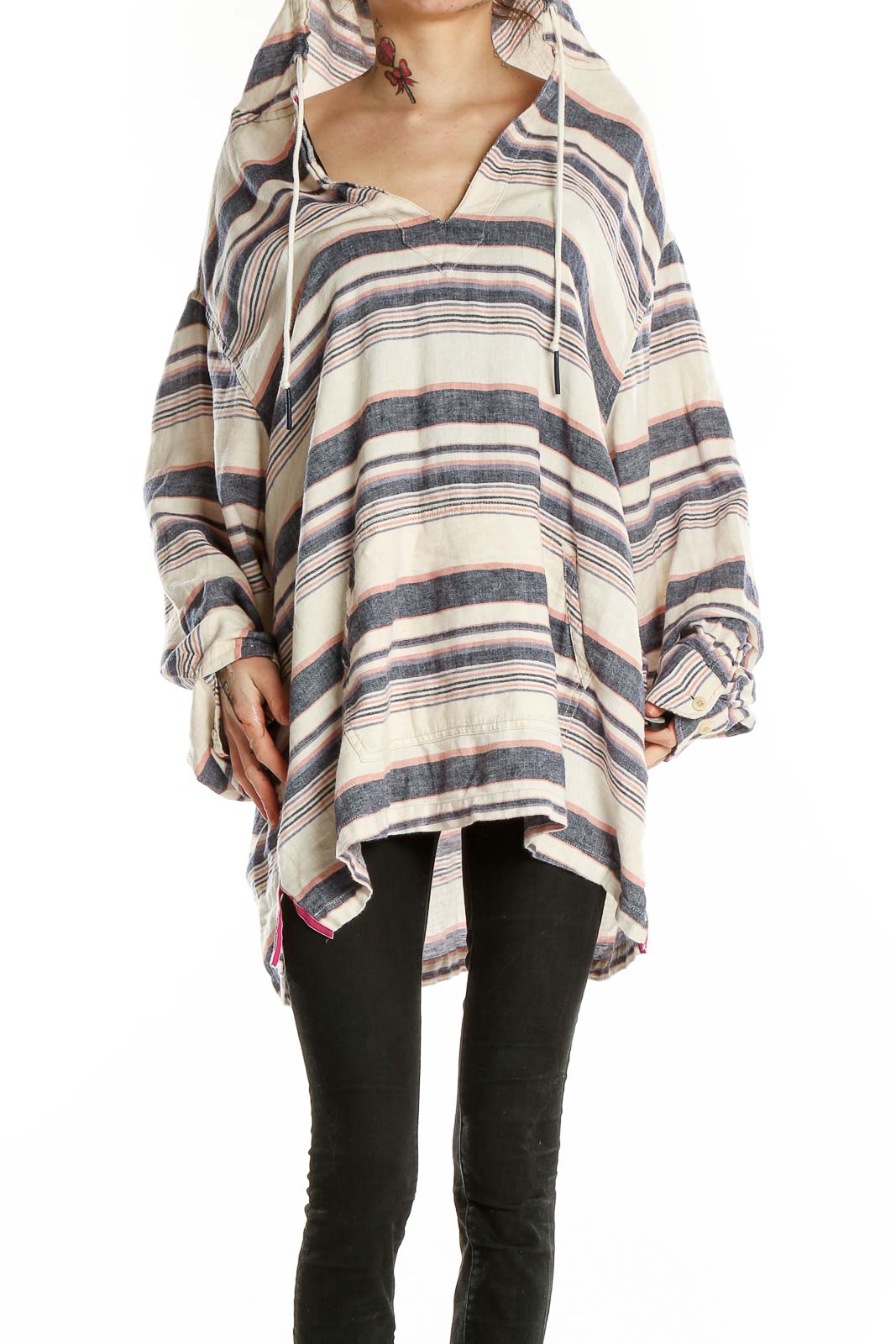 Embrace casual elegance with this beige striped oversized hooded knit tunic from Tommy Bahama. Crafted from a luxurious blend of cotton and linen, this piece offers both comfort and style. The relaxed fit and generous XXL size ensure a flattering drape on various body types, while the horizontal stripes in shades of beige, navy, and light pink add a nautical charm. The hood adds a cozy touch, perfect for those breezy beach evenings or casual outings. With its generous length of 30 inches, this tunic provides ample coverage and can be easily paired with leggings or skinny jeans for a chic, laid-back look. Despite being in 'Good' condition, this Tommy Bahama piece still exudes quality and style, making it a versatile addition to your wardrobe.