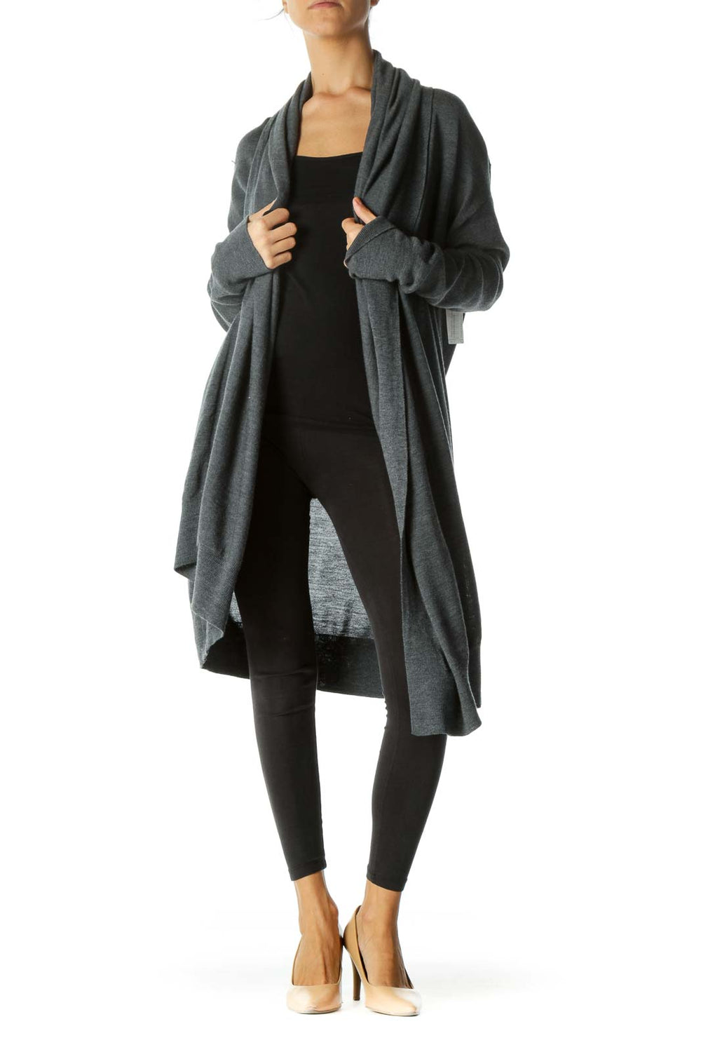 Gray Draped Mid-Length Cardigan