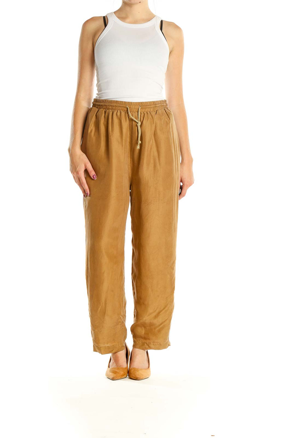 Step into comfort and style with these camel-colored relaxed fit pants from SilkRoll. Perfect for casual outings or lounging at home, these pants feature a flattering high-waisted design with a convenient drawstring closure for a customizable fit. The lightweight fabric drapes beautifully, creating a flowing silhouette that's both elegant and effortless.