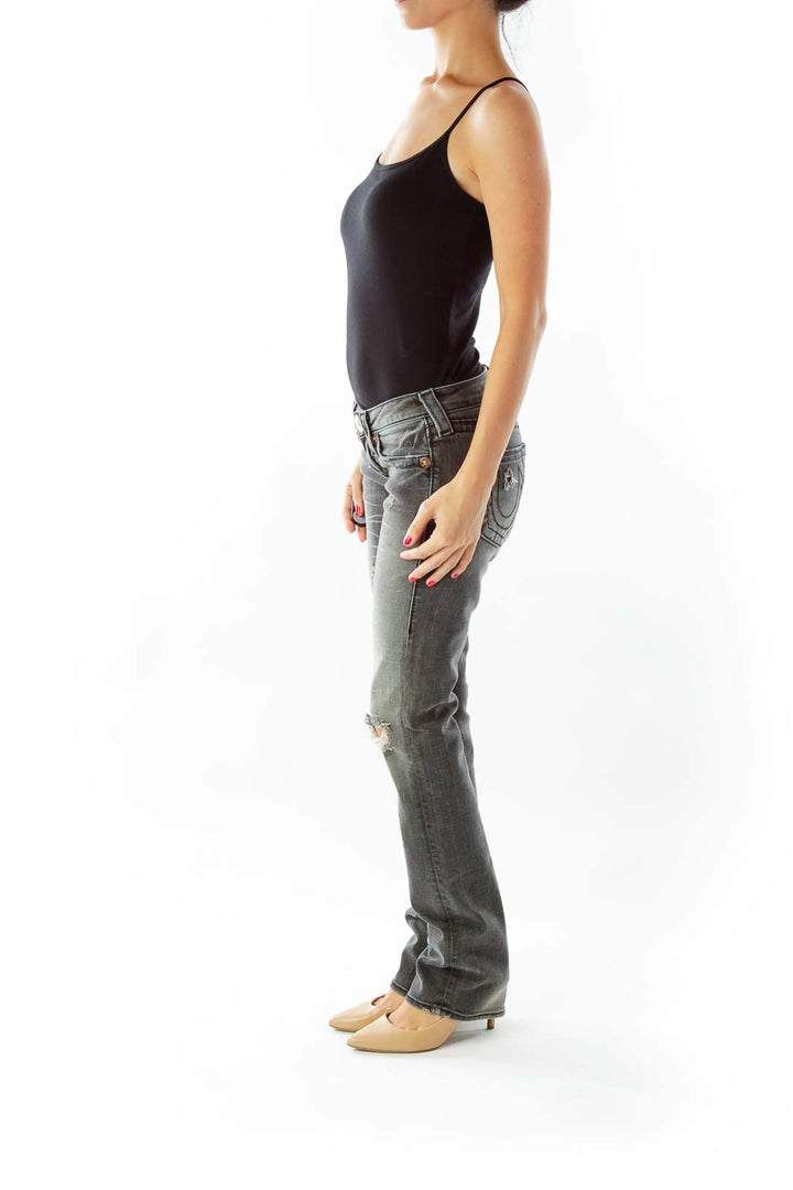 Black Distressed Straight Leg Jeans