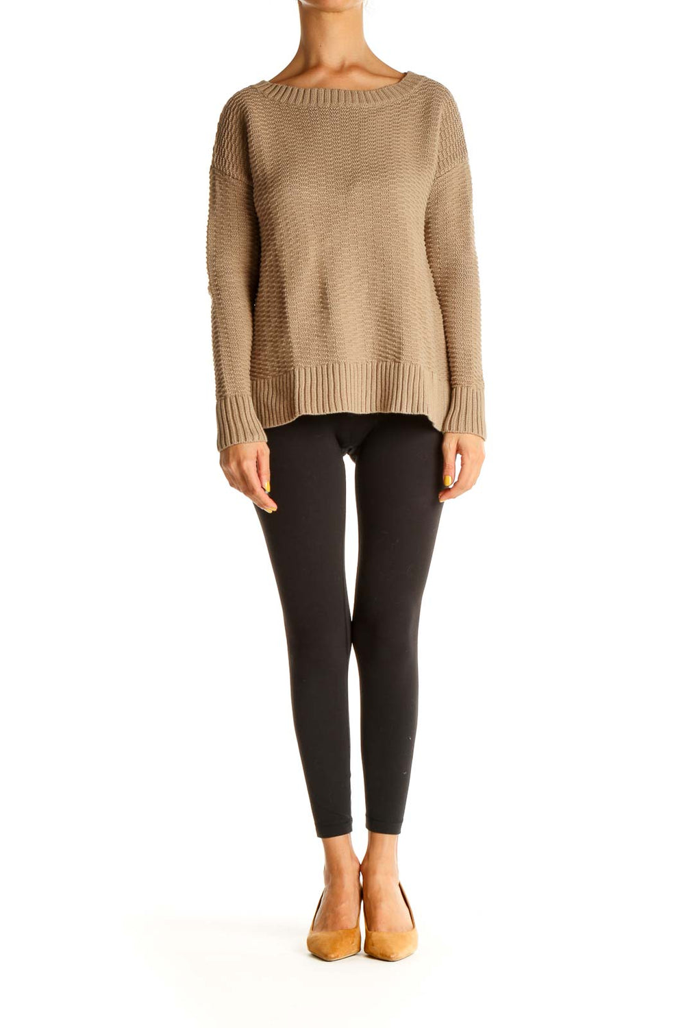 Beige Textured Classic Sweater