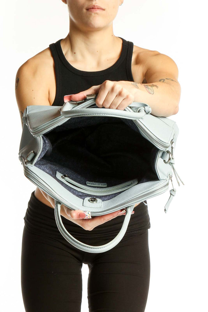 Crafted with attention to detail, this satchel boasts clean lines and a sophisticated shape. The mint green color adds a fresh, modern touch to any outfit. Dual top handles offer comfortable carrying options, while the silver-toned hardware adds a subtle gleam.