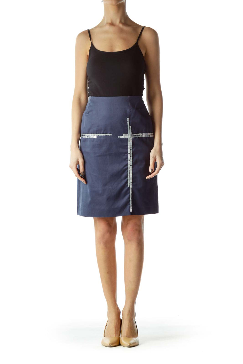 Blue Front Sequin Design A-Line Skirt