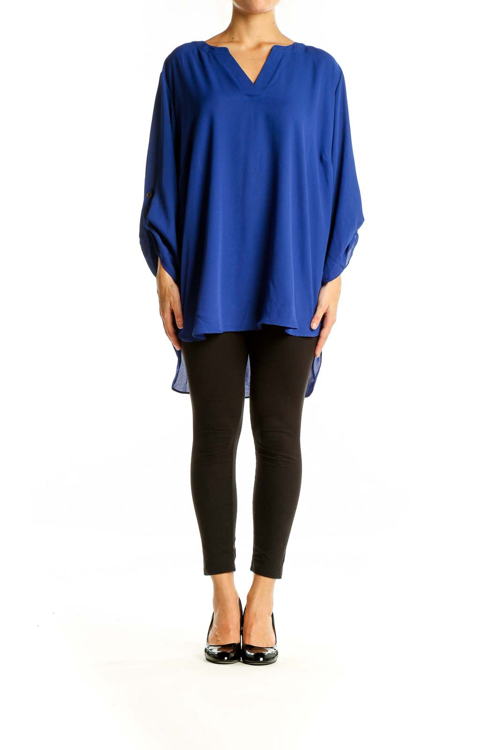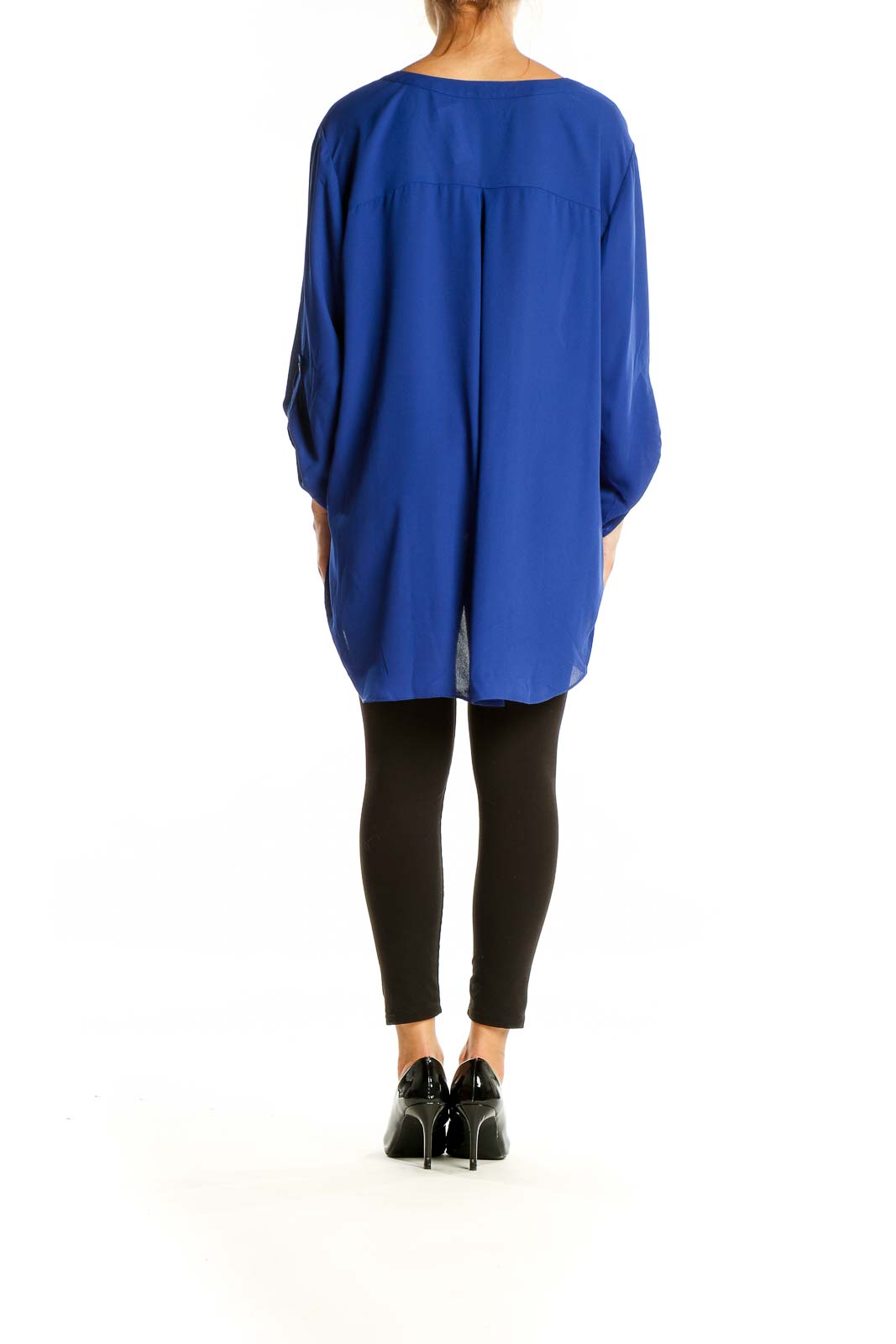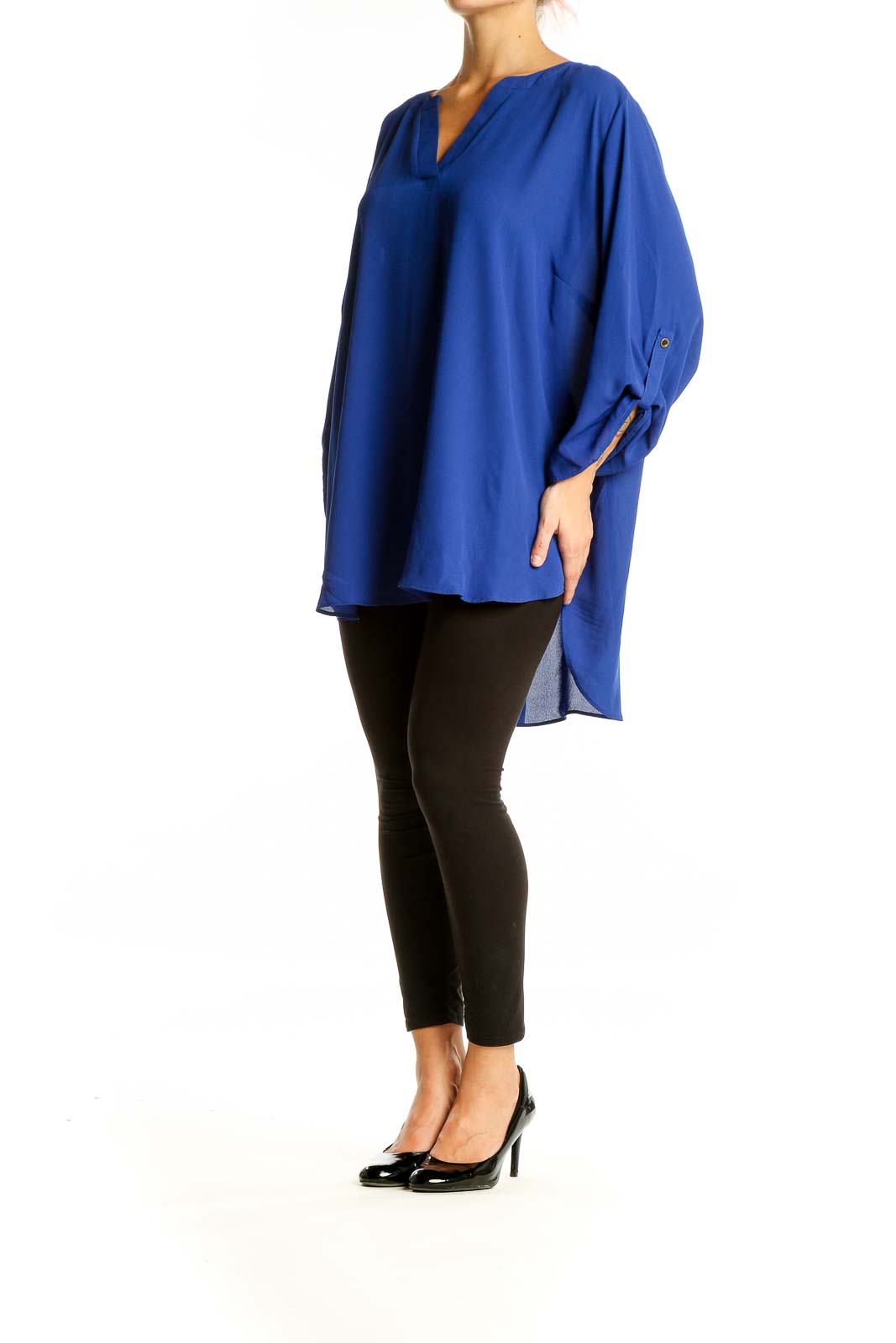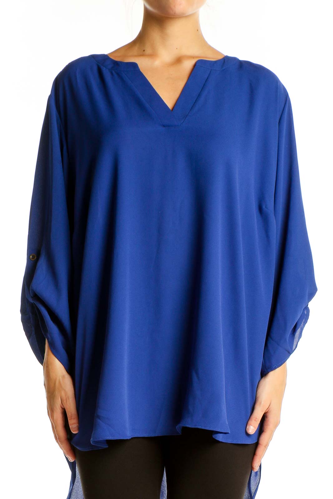 Make a statement in this stunning royal blue tunic top from Vince Camuto. The flowing silhouette and V-neckline create an effortlessly chic look that's perfect for any occasion. Crafted from soft, lightweight polyester, this top offers both comfort and style. The relaxed fit and longer length provide flattering coverage, while the roll-tab sleeves add a touch of versatility. The vibrant blue hue is sure to brighten up your wardrobe and complement a variety of bottoms. In excellent condition, this 2X size top is generously proportioned to flatter fuller figures. With its easy-care fabric and timeless design, this Vince Camuto tunic is a must-have addition to your casual-chic collection.