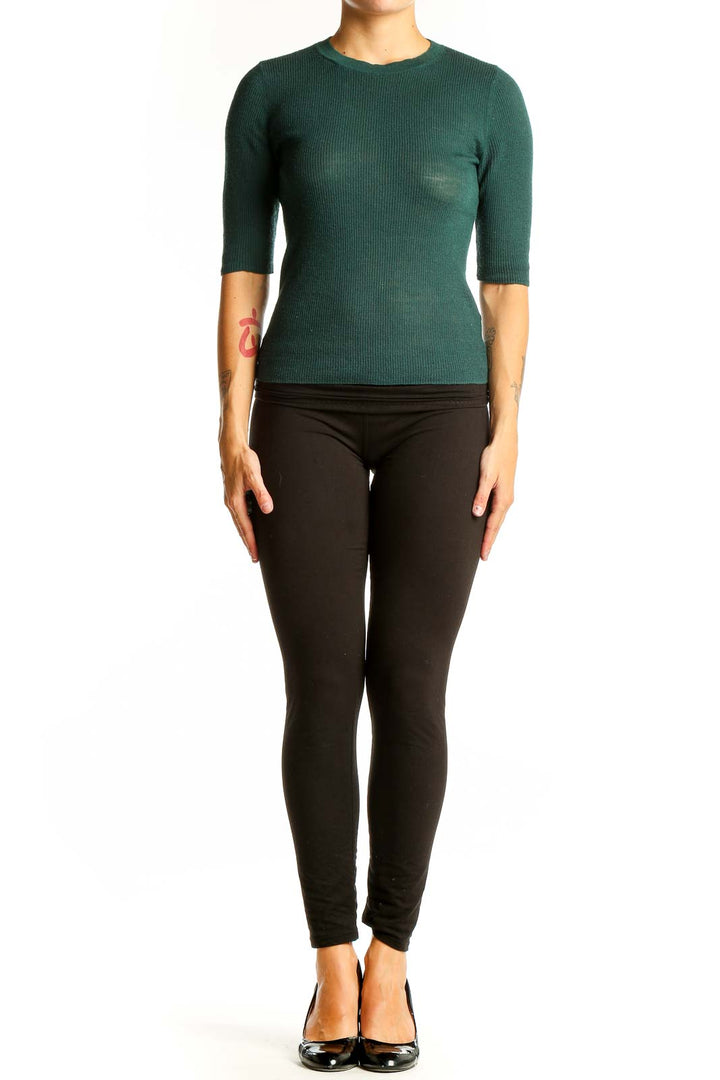 Featuring a slim fit that accentuates your silhouette, this sweater boasts elbow-length sleeves, perfect for transitional weather or layering. The rich forest green hue is both timeless and on-trend, easily pairing with a variety of bottoms from sleek trousers to casual denim.