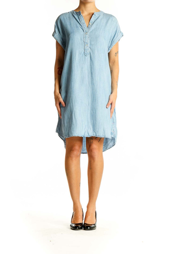 Step into effortless style with this light blue denim shirt dress from vineyard vines. This versatile piece features a relaxed, oversized fit that drapes beautifully on the body, perfect for casual outings or beach days. The soft denim fabric offers comfort and durability, while the button-down front and rolled short sleeves add a touch of laid-back charm. The high-low hemline provides extra coverage and movement, making it ideal for various body types. In good condition, this XL dress is a wardrobe staple that combines comfort with classic American style.