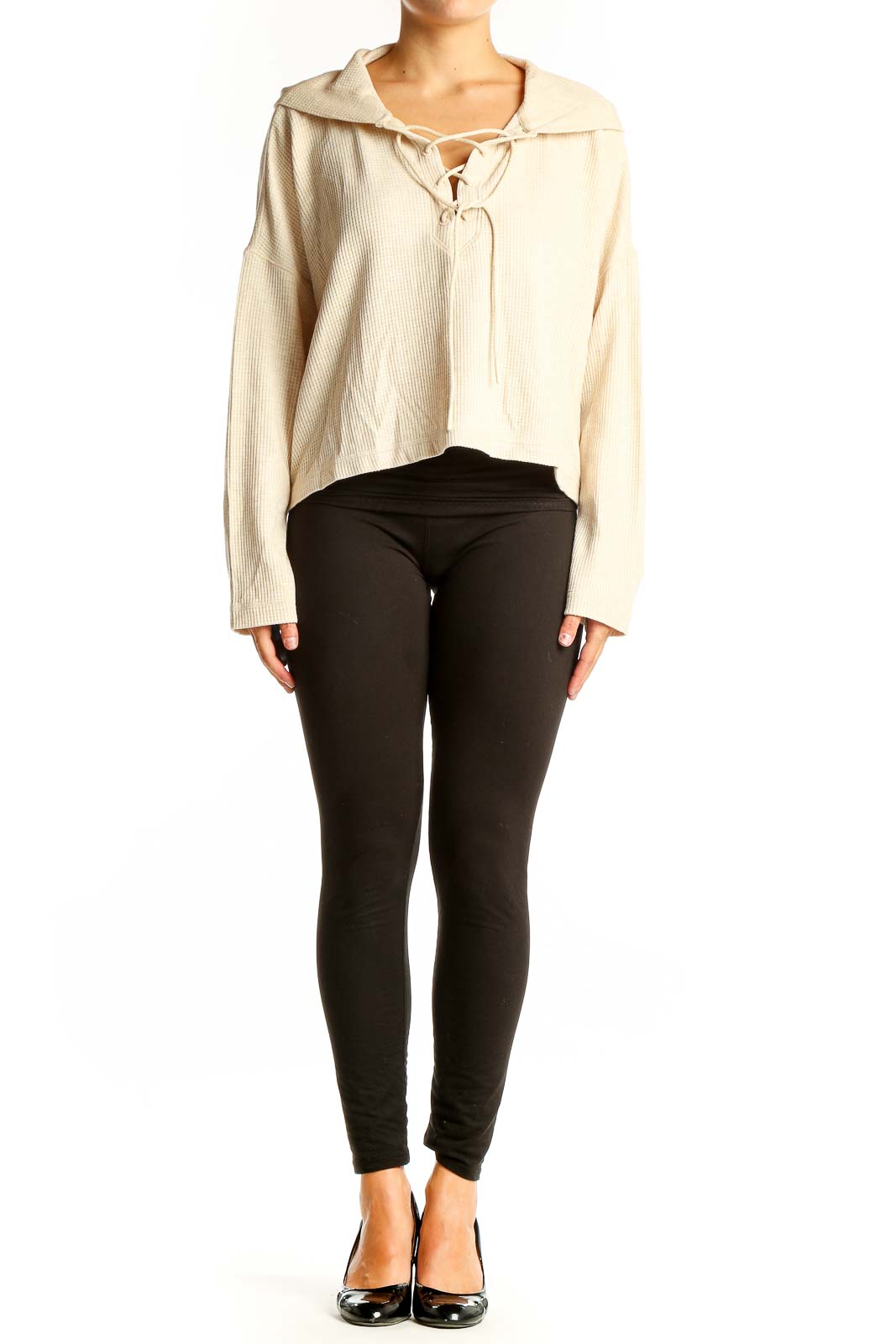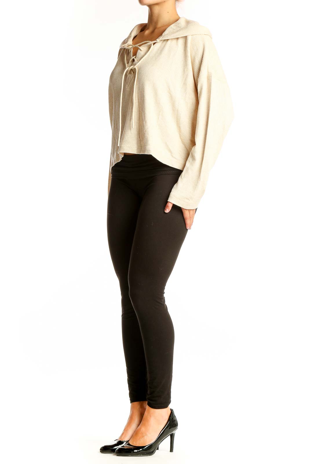 Elevate your casual wardrobe with this chic cream lace-up cropped sweater from vineyard vines. This stylish top features a unique wide collar design and a trendy lace-up front, perfect for adding a touch of sophistication to your everyday look. Crafted from a soft and comfortable blend of acrylic, rayon, and spandex, this sweater offers both warmth and flexibility.