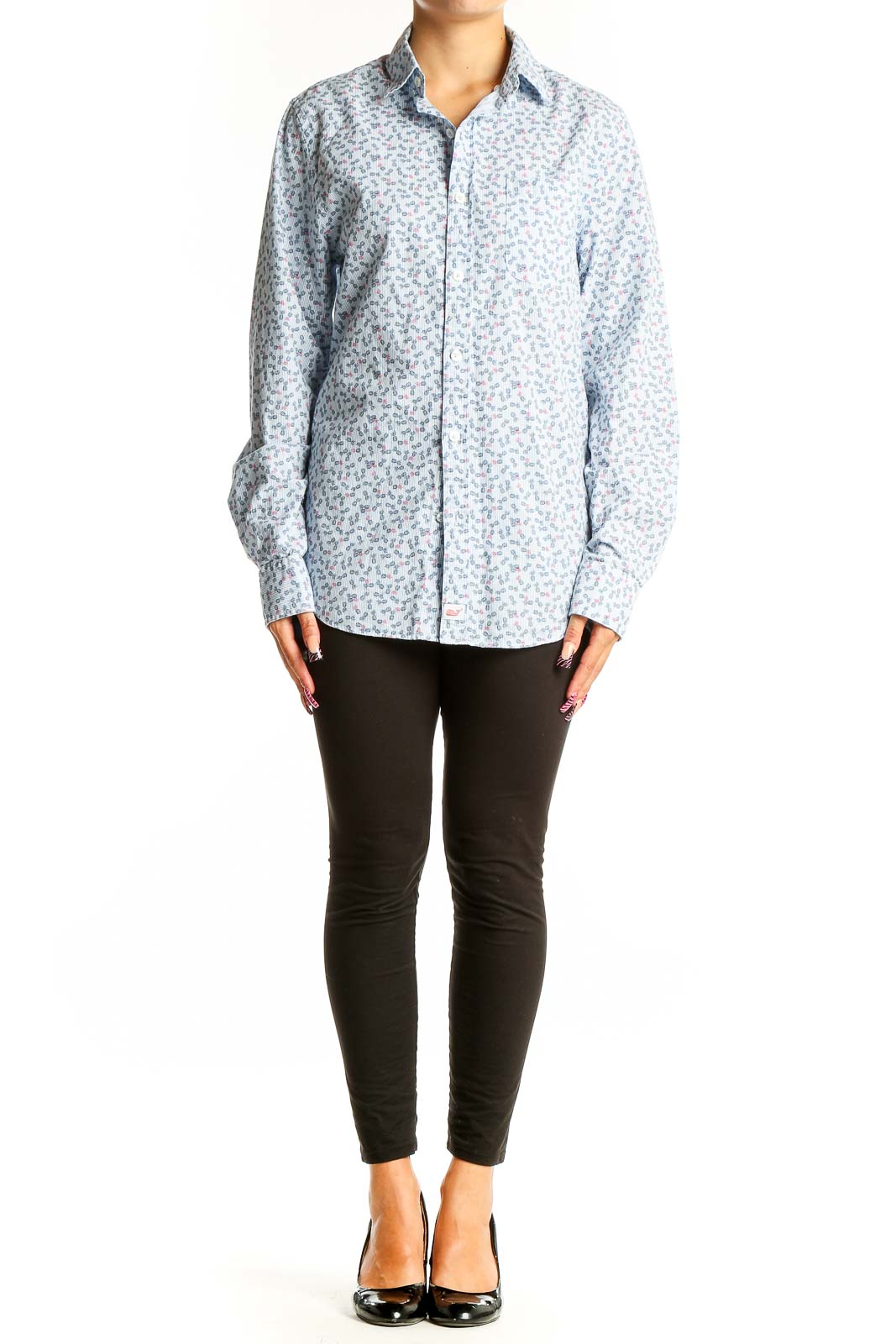 This excellent condition shirt in size XS offers a comfortable, relaxed fit with a bust measurement of 34", hip measurement of 42", and a flattering length of 31". The light blue background color creates a fresh, airy look that's ideal for spring and summer. Pair it with your favorite jeans or chinos for an effortlessly stylish ensemble that showcases vineyard vines' signature preppy aesthetic.