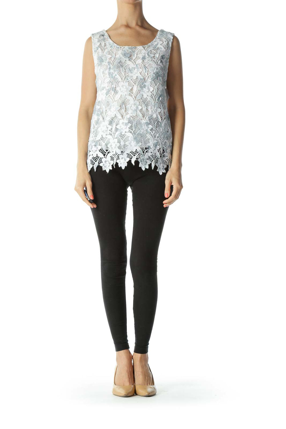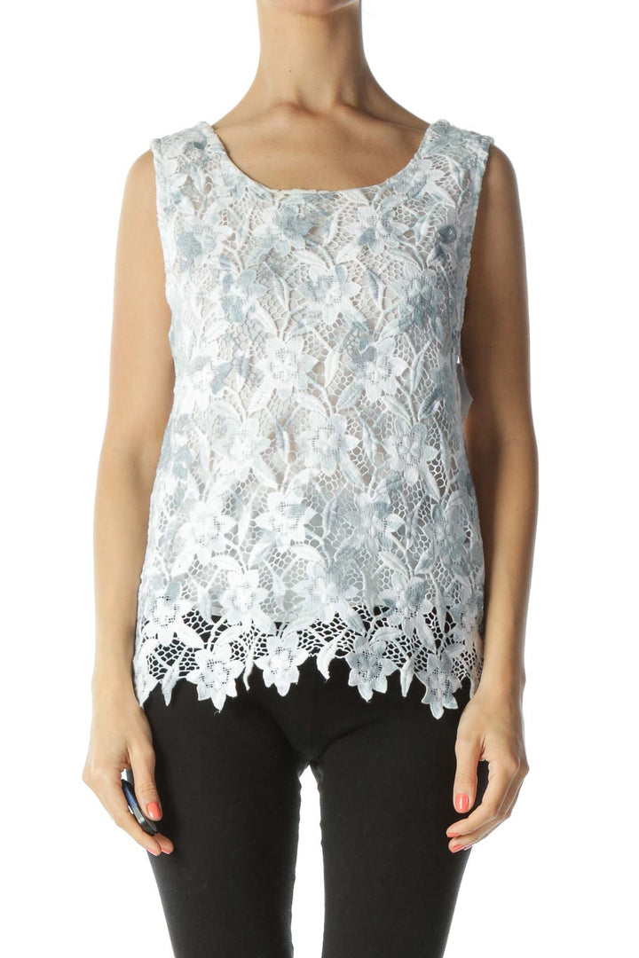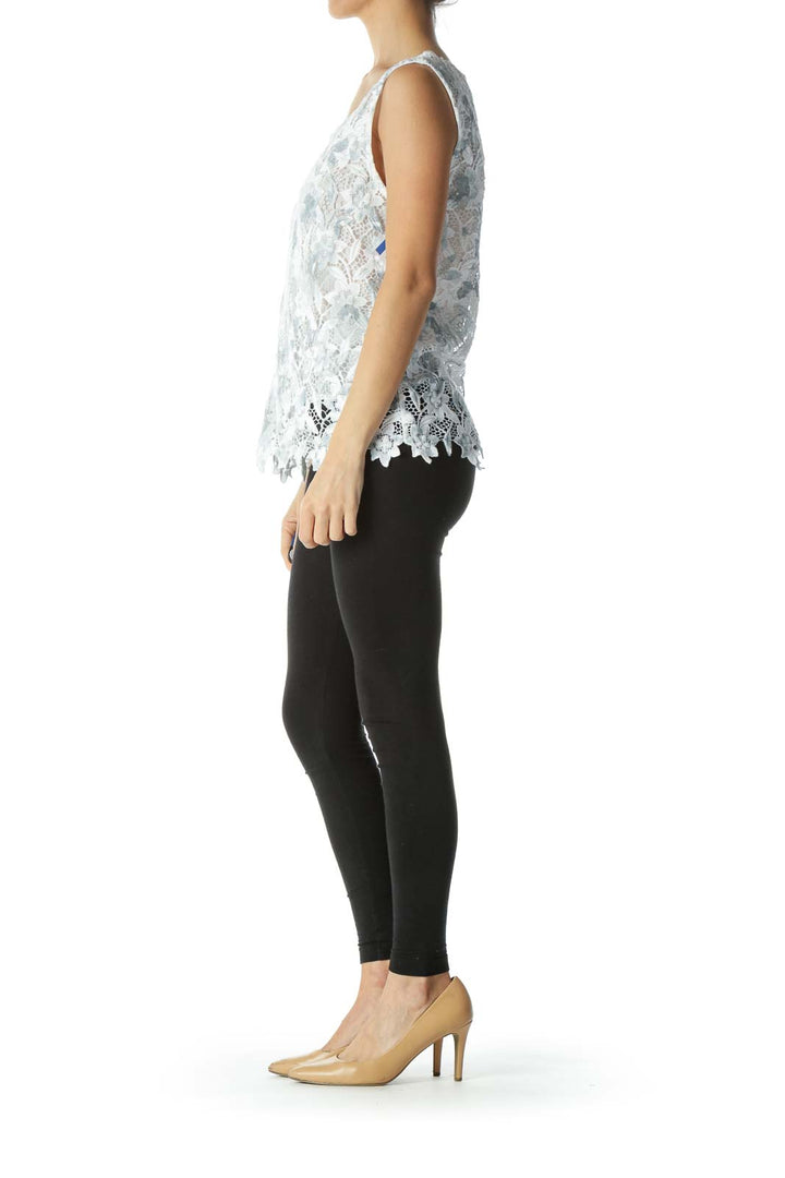 Blue & White Lace Floral Sleeveless Lined Blouse