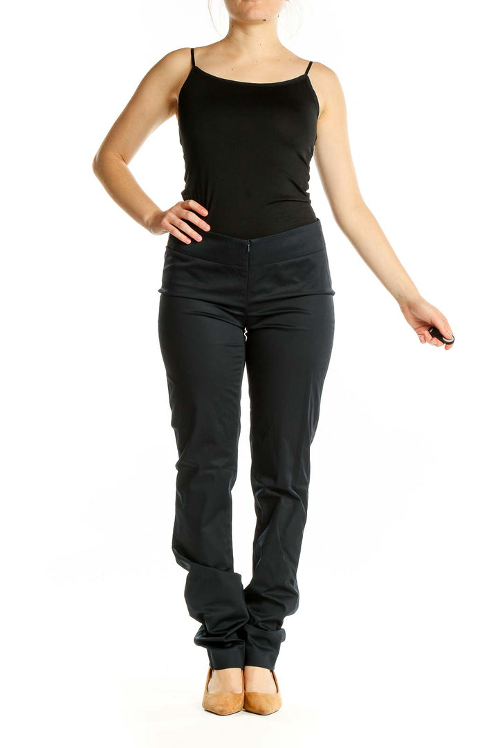 Step into sophistication with these sleek black pants from Worth. Crafted from a comfortable blend of cotton and elastane, these slim-fit trousers offer both style and flexibility for all-day wear. The classic design features a smooth waistband and a flattering straight leg that elongates your silhouette. Perfect for both office attire and evening outings, these versatile pants are a wardrobe essential. In excellent condition, they boast quality construction with precise measurements for a tailored fit. The subtle stretch in the fabric ensures ease of movement, while the timeless black color provides endless pairing possibilities. Elevate your look with these Worth pants that seamlessly blend comfort and elegance.