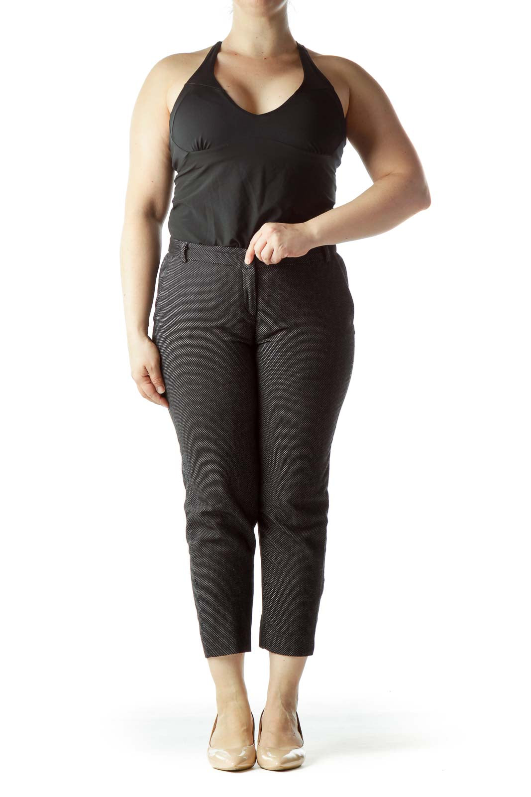 Gray Textured Cropped Dress Pants