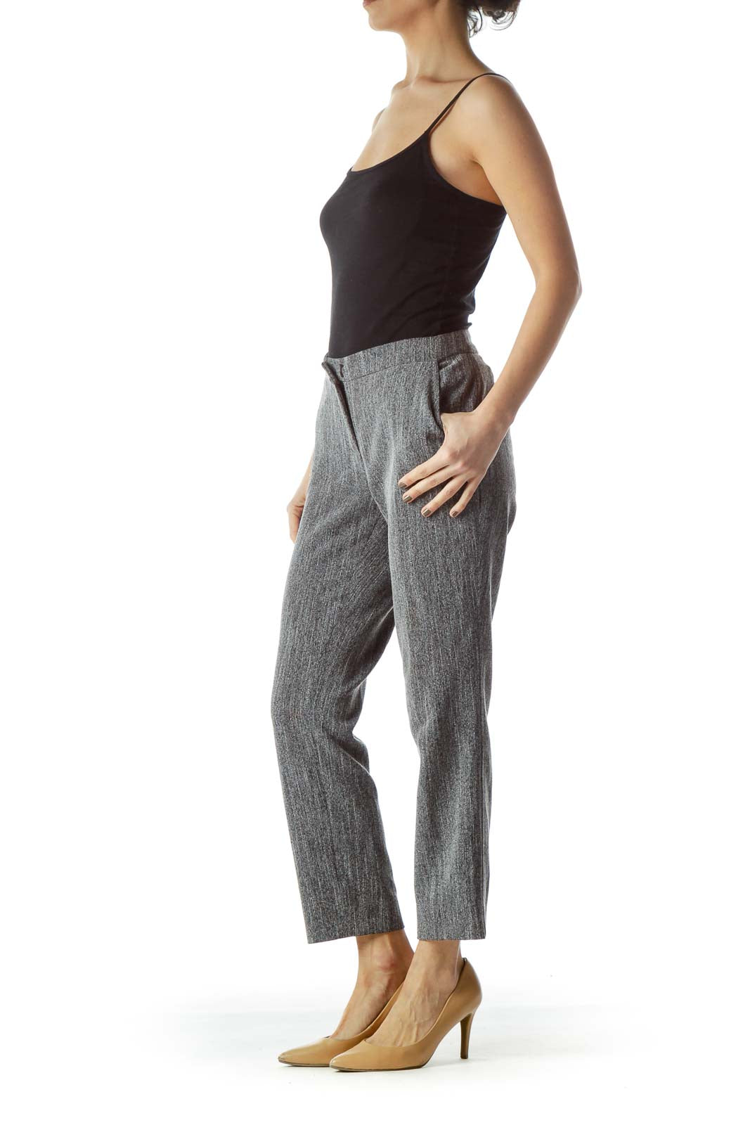 The versatile gray hue makes these trousers perfect for both office wear and smart-casual occasions. They feature a clean front with a concealed closure for a sleek look. The ankle-length cut allows for easy styling with various shoe options, from classic pumps to trendy flats.