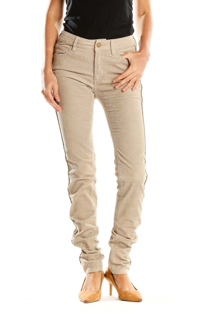 Designed to flatter, these pants feature a mid-rise waist and a slim leg that elongates your figure. The soft corduroy fabric ensures all-day comfort, making them ideal for both office wear and casual outings. With classic five-pocket styling and a button closure, these pants combine functionality with chic design.